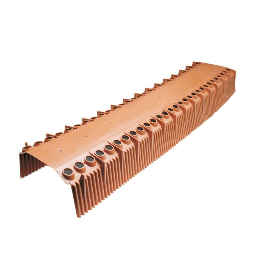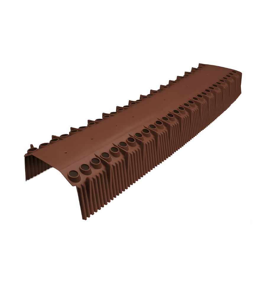 Le closoir rigide ventilé est un élément monobloc conçu en polyéthylène ultra-souple et traité anti-UV. Il est perforé sur la partie supérieure du corps pour évacuer l'air chaud et humide ainsi que renouveler de l'air. Il est également doté de bavettes latérales plissées très souples pour une bonne adaptabilité avec la tuile sous-jacente.