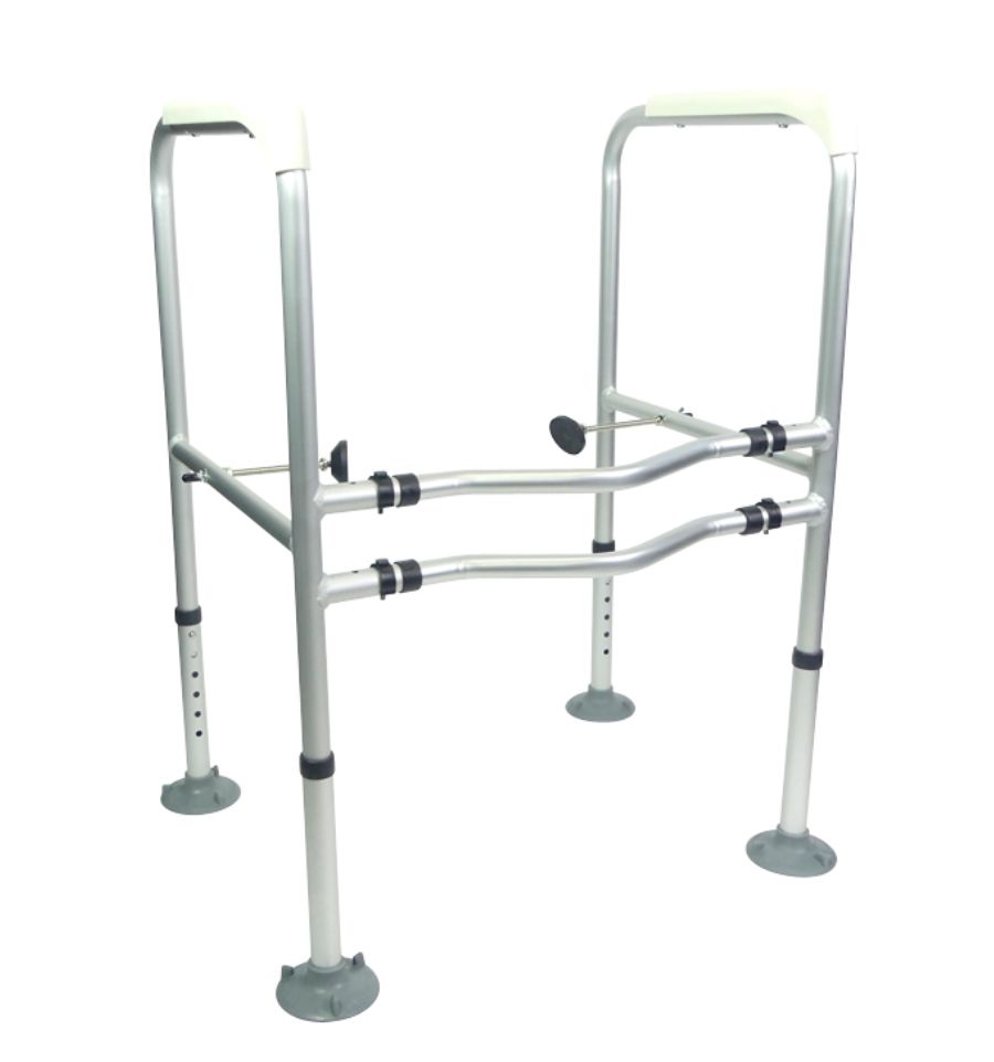 Réglable en hauteur, il s'adapte à chaque utilisateur. Pour un maintien optimal, des ventouses doivent être serrées de chaque côté du WC.