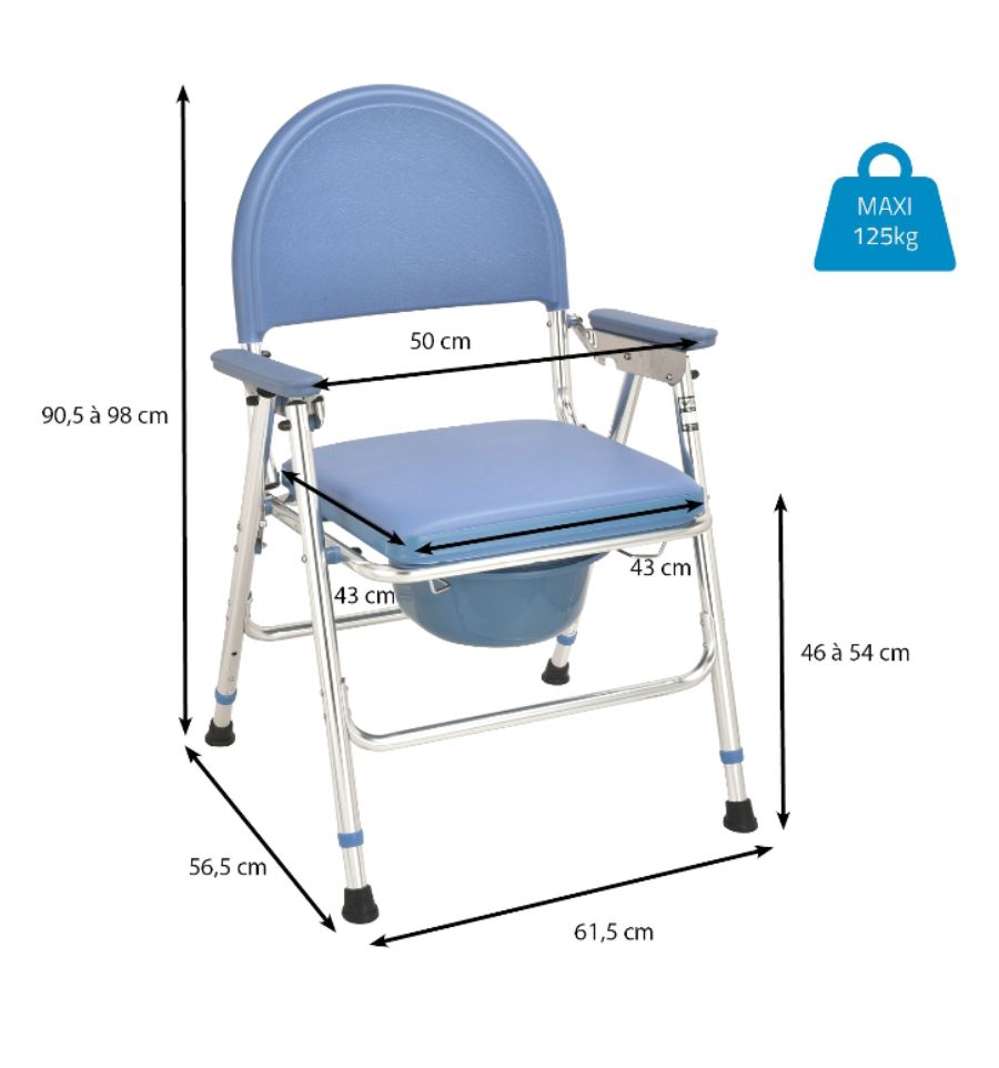 De plus, elle est pliable, ce qui permet un déplacement moins encombrant. Enfin, Le pot est amovible par le haut ou vers l'avant. Ainsi, vous pouvez l'extraire de la chaise aisément afin de procéder au nettoyage.