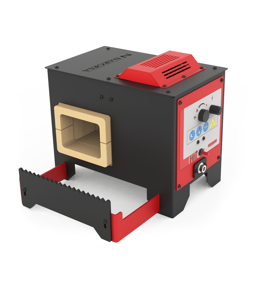 Les fours disposent de support de barre intégré et réglable à différentes longueurs pour supporter le matériau, sa forme évite que le matériau à travailler ne glisse.