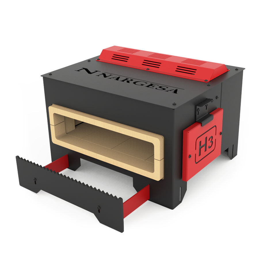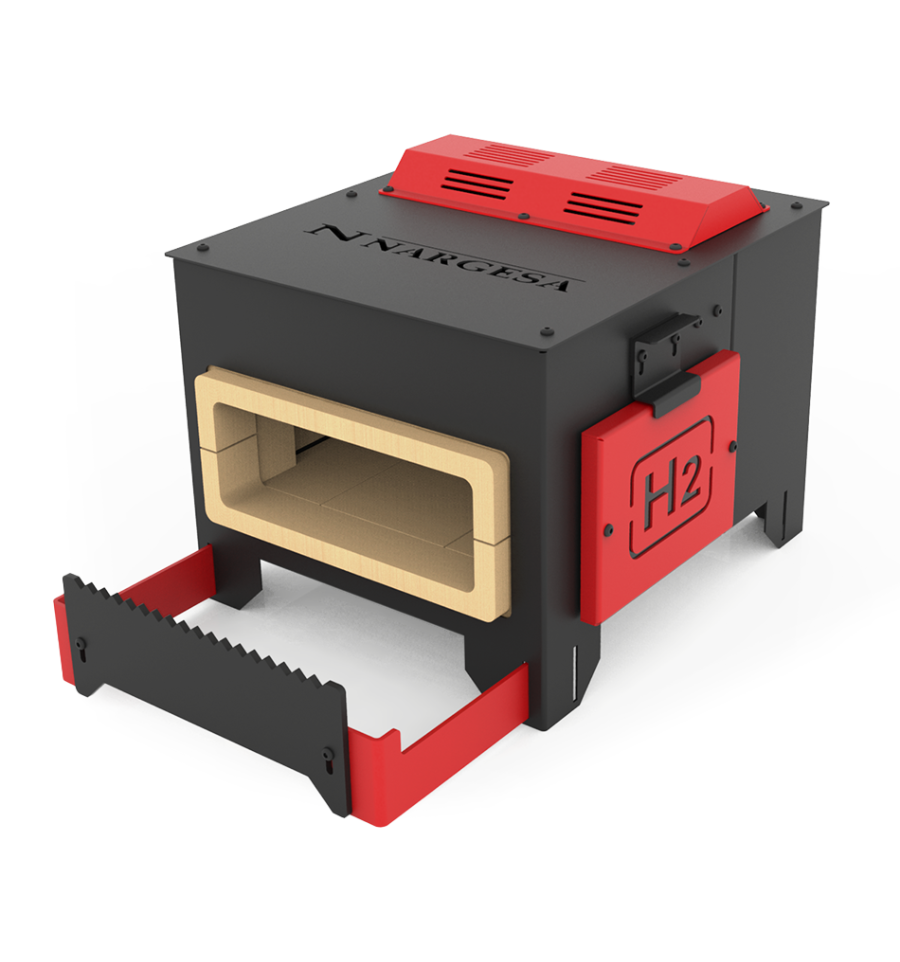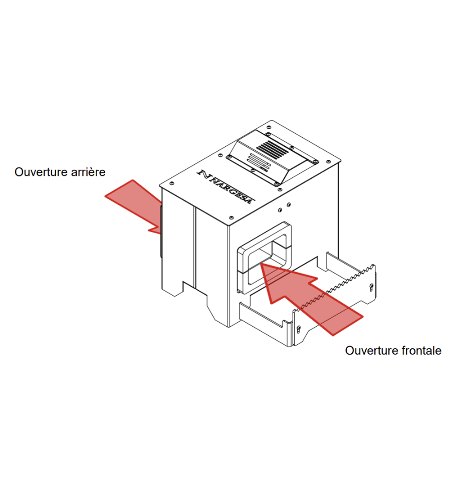Il est possible de monter la porte arrière du four pour pouvoir travailler dans le centre des barres en fer. La porte se démonte sans outils.