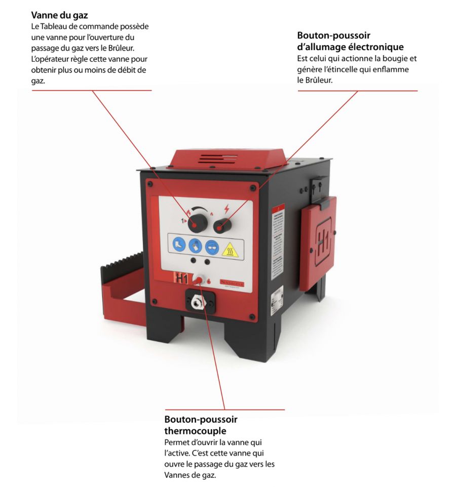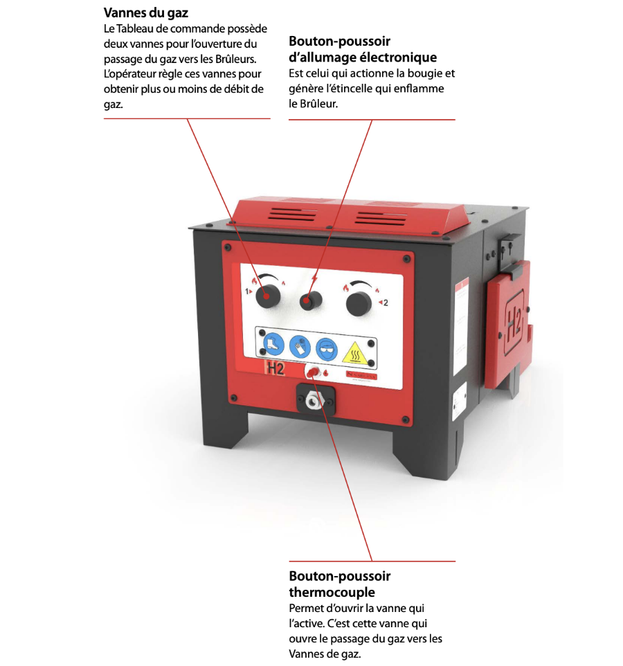 Il intègre un allumage électronique automatique qui évite à l'opérateur de devoir introduire ses mains dans la chambre de combustion, supprimant ainsi tout contact direct avec la flamme.
