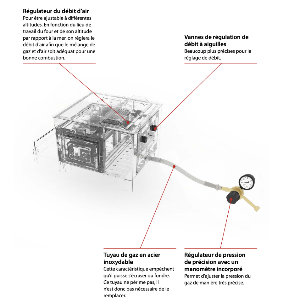 L'ensemble du système de gaz est intégré dans la structure du four, ce qui le protège efficacement contre les chocs susceptibles de provoquer des fuites.
