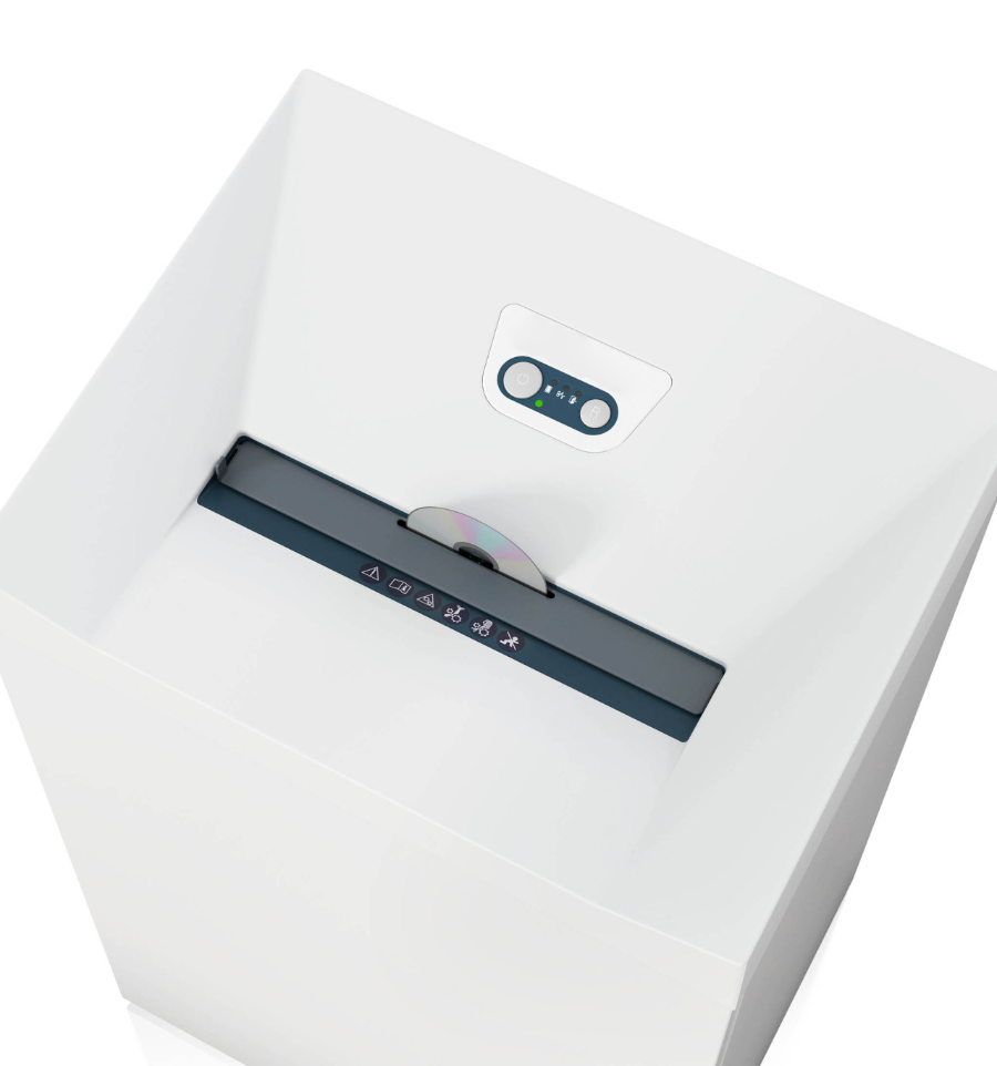 Le destructeur est équipé d'une fente d'introduction de 130 mm ainsi qu'une ouverture séparée dédiée aux CD, un système conçu pour prévenir toute insertion accidentelle et protéger l'utilisateur contre les projections potentielles lors de la destruction.