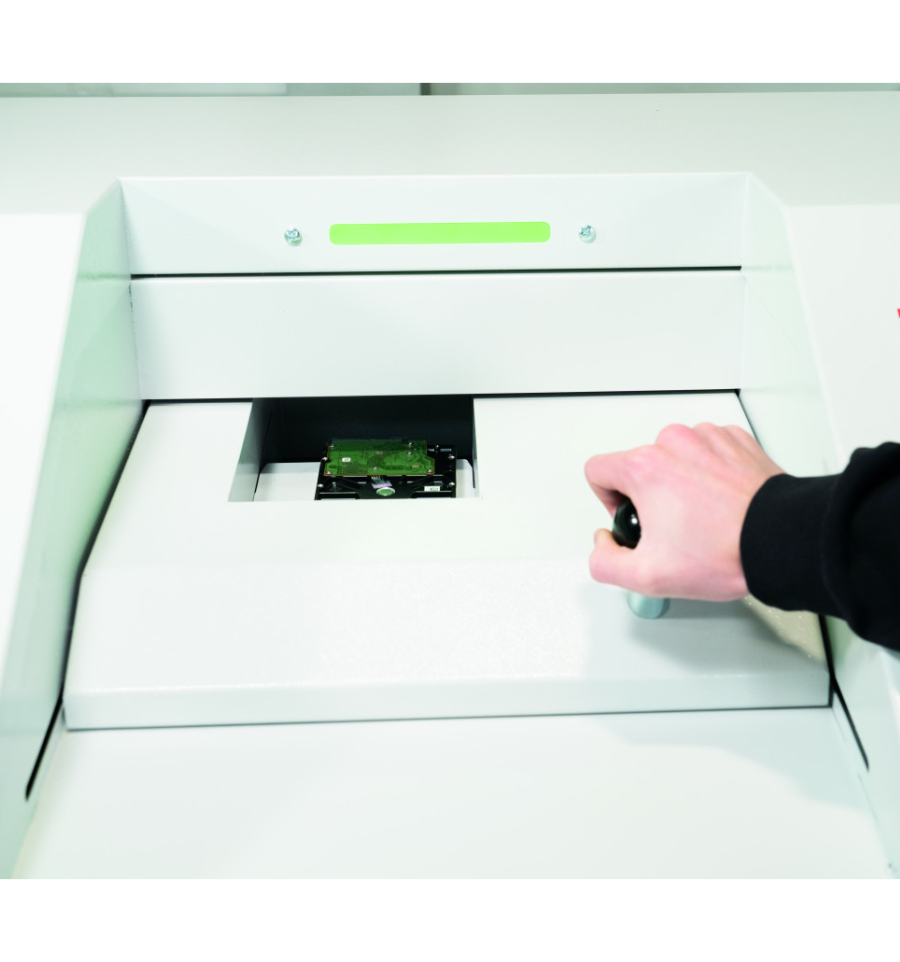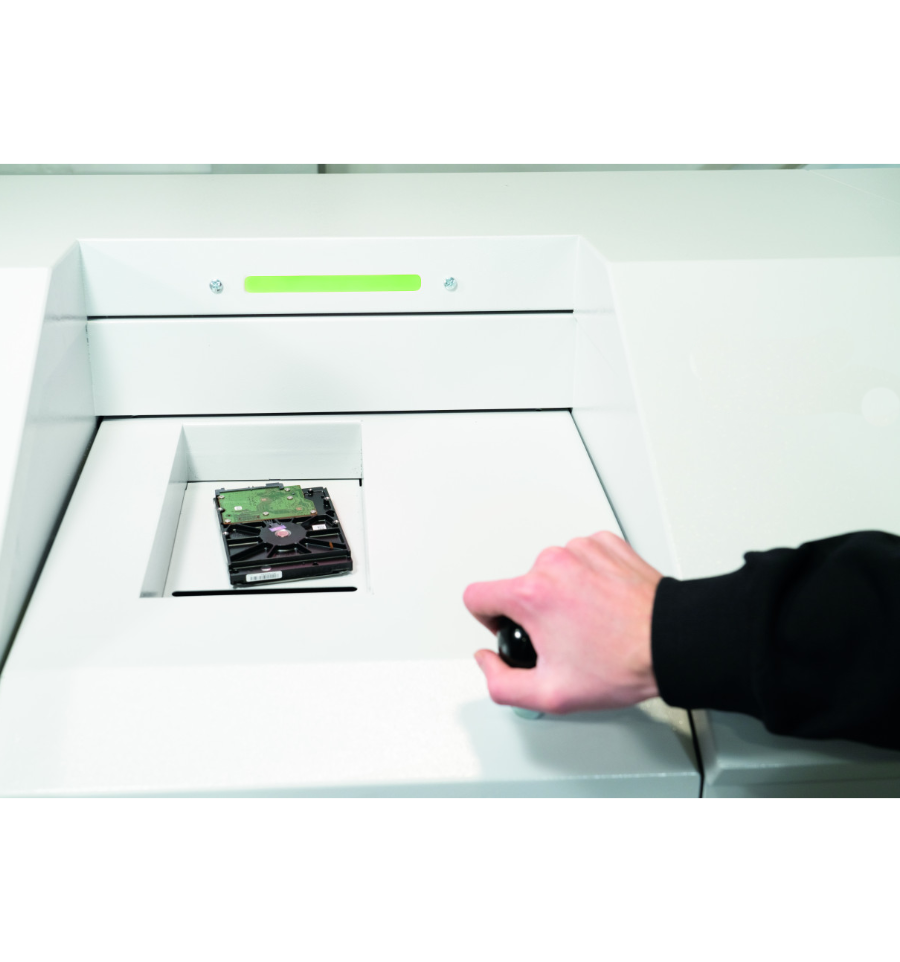Résistant et efficace, ce destructeur disque dur s'intègre aux environnements professionnels.