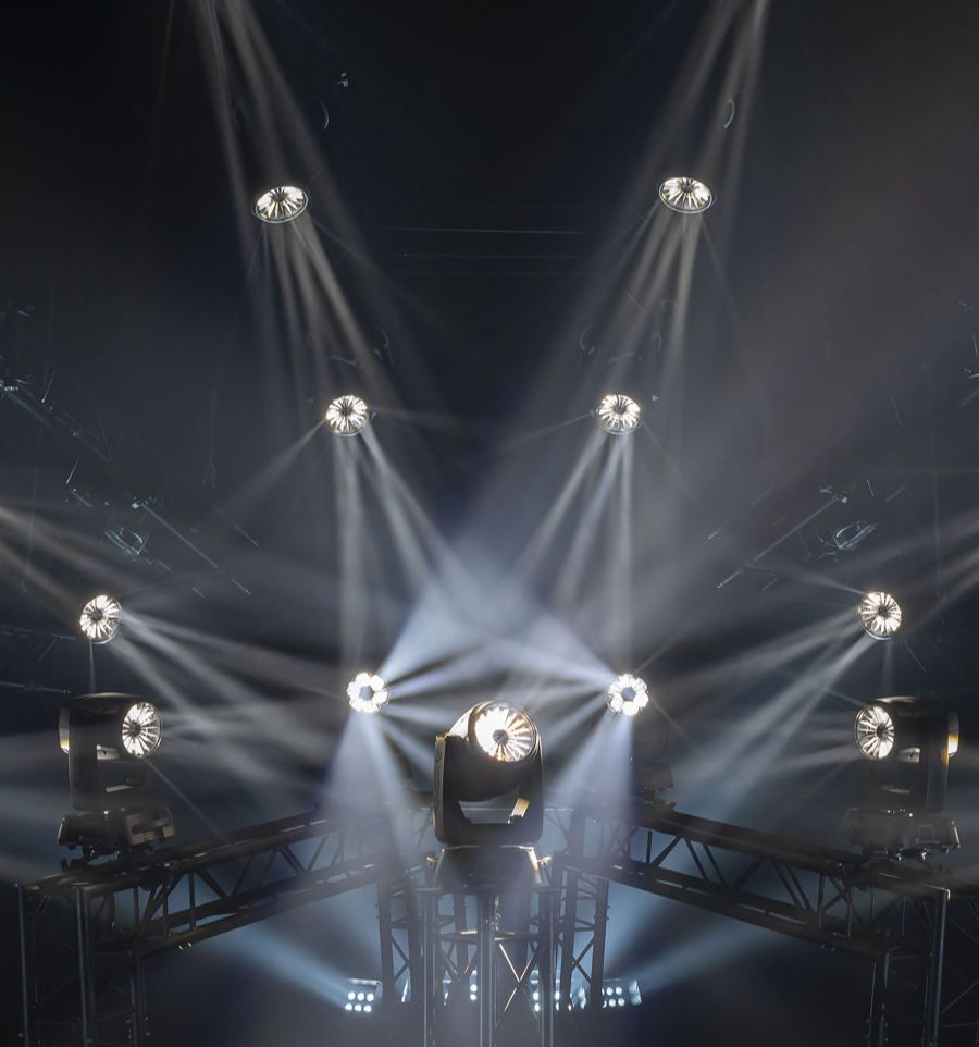 La lyre Wash est utilisée pour créer un éclairage d'ambiance et de remplissage. Elle offre un faisceau lumineux large et doux et est idéale pour éclairer les scènes et les salles de concerts disposant d'un plafond de faible hauteur.