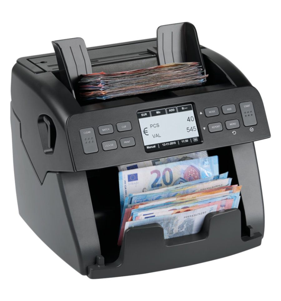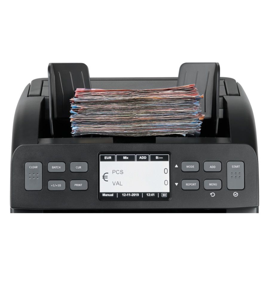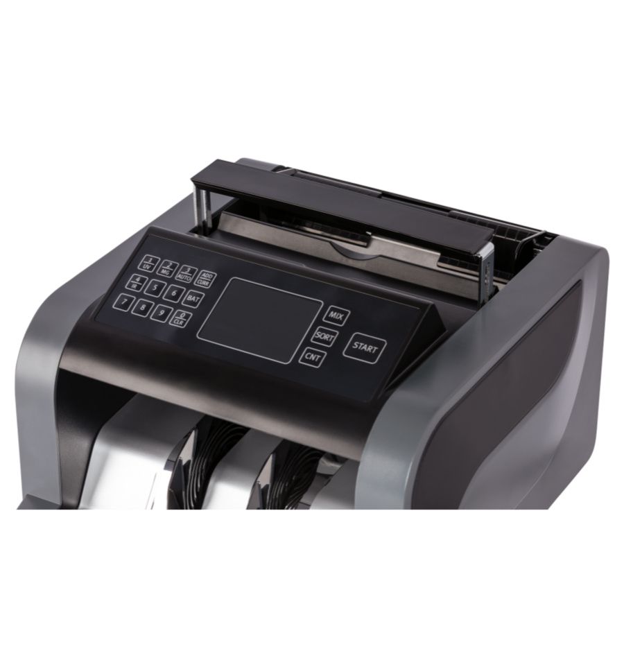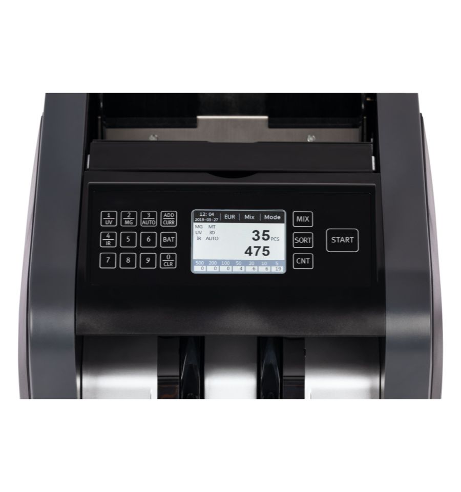 Ce modèle est équipé d’un grand chargeur, spécialement conçu pour traiter des volumes importants de billets, ce qui en fait un outil idéal pour les environnements à forte activité. L’appareil affiche avec précision le montant total compté ainsi que le nombre de billets par valeur, permettant un contrôle rapide et fiable des encaissements.