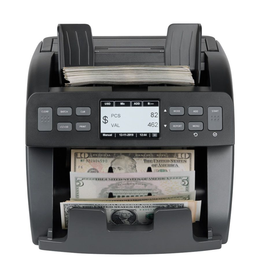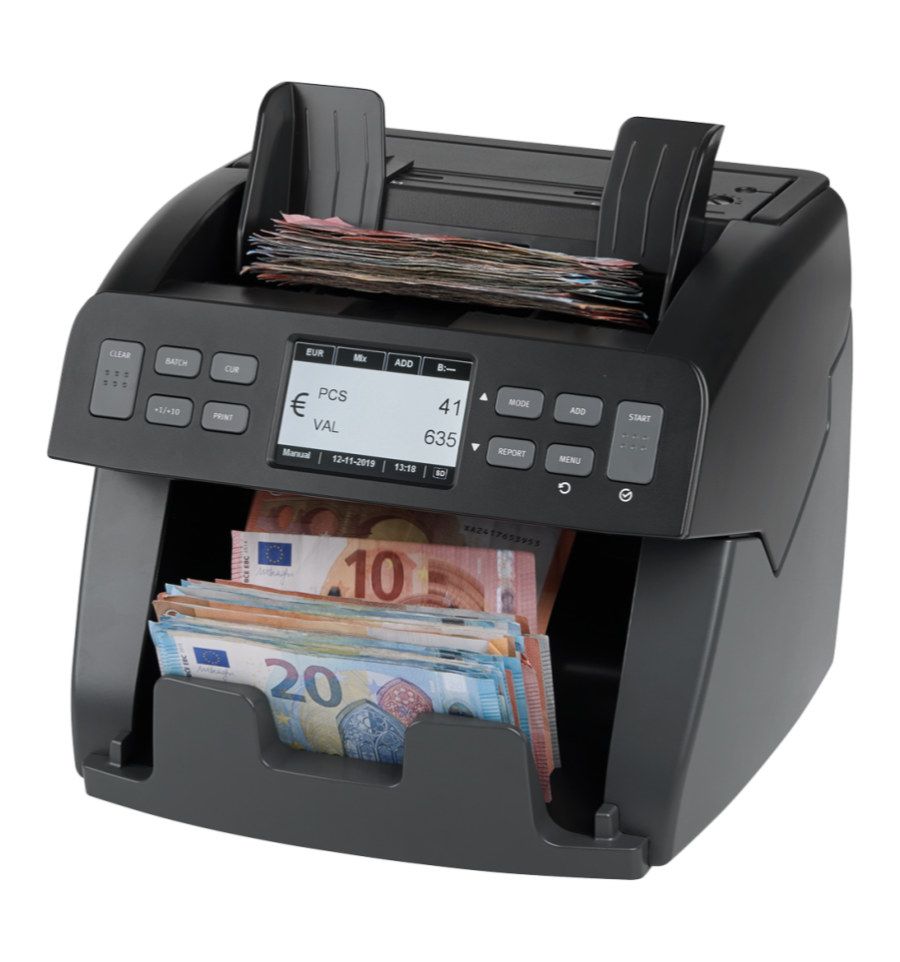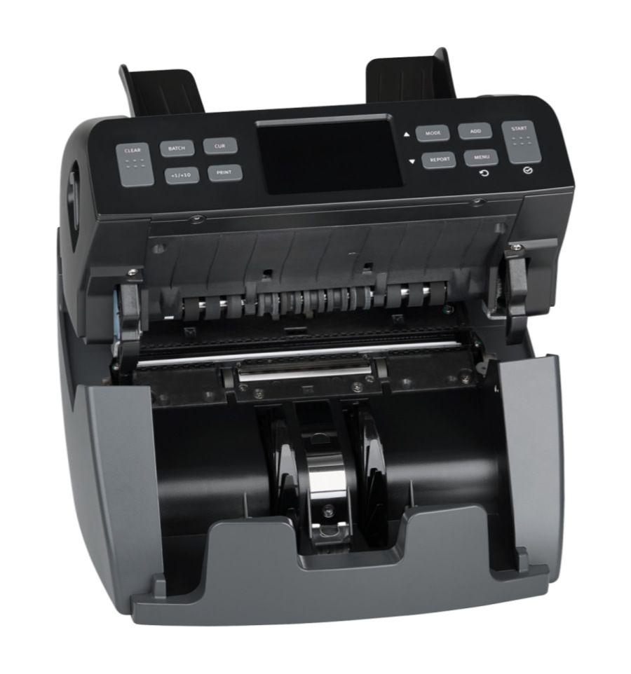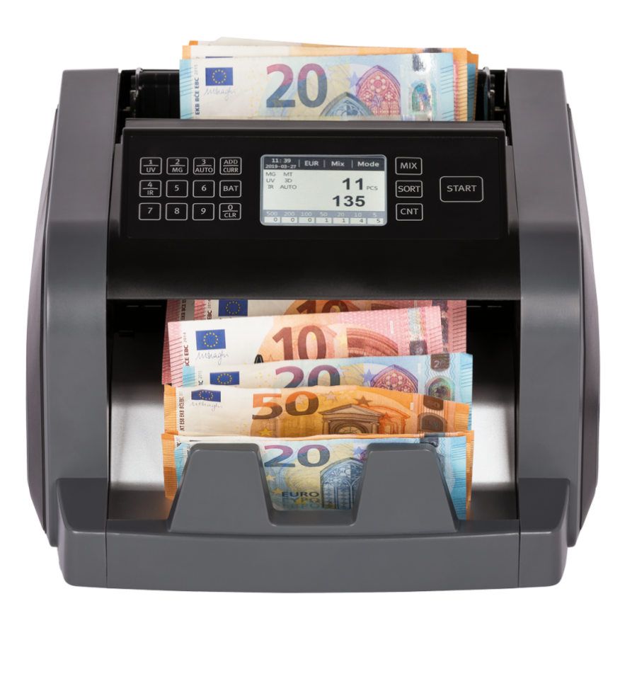 Ce modèle est équipé d’un grand chargeur, spécialement conçu pour traiter des volumes importants de billets, ce qui en fait un outil idéal pour les environnements à forte activité. L’appareil affiche avec précision le montant total compté ainsi que le nombre de billets par valeur, permettant un contrôle rapide et fiable des encaissements.