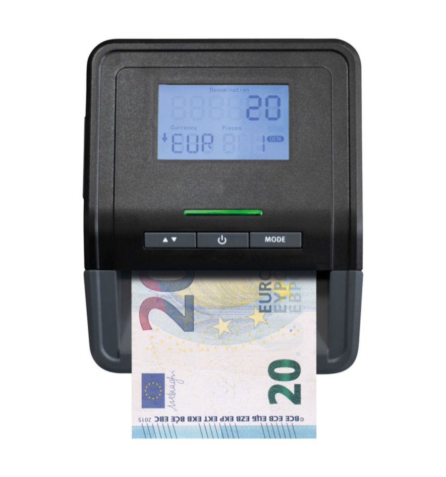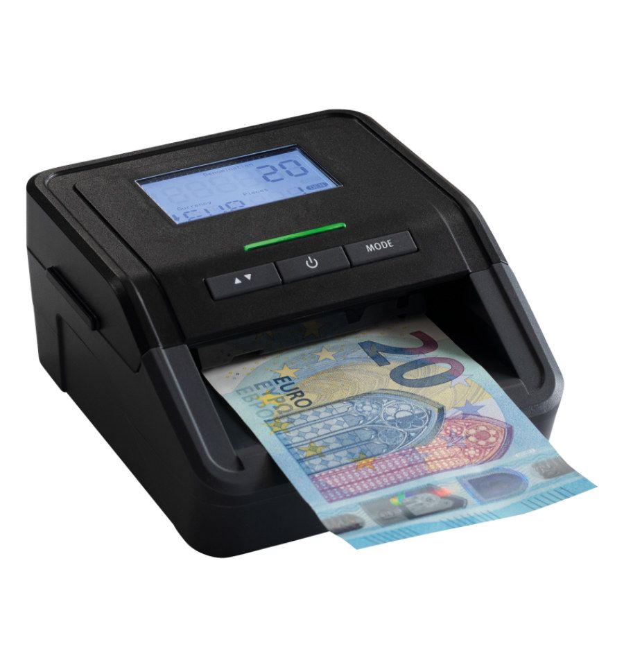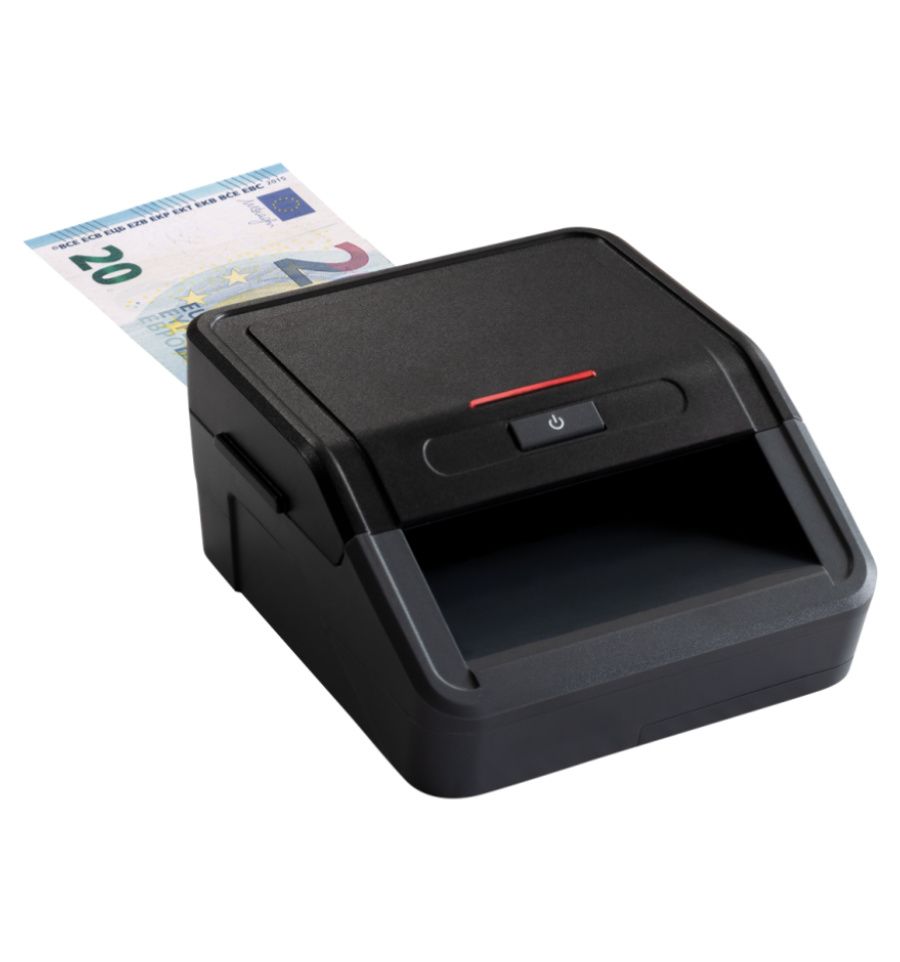 La reconnaissance automatique des devises permet une utilisation sans réglages manuels, rendant l’appareil parfaitement adapté à un environnement multidevises. Lorsqu’un billet suspect est détecté, l’utilisateur est immédiatement alerté grâce à un signal sonore clair, à une barre LED lumineuse et à l’éjection automatique du billet vers l'arrière de l'appareil.