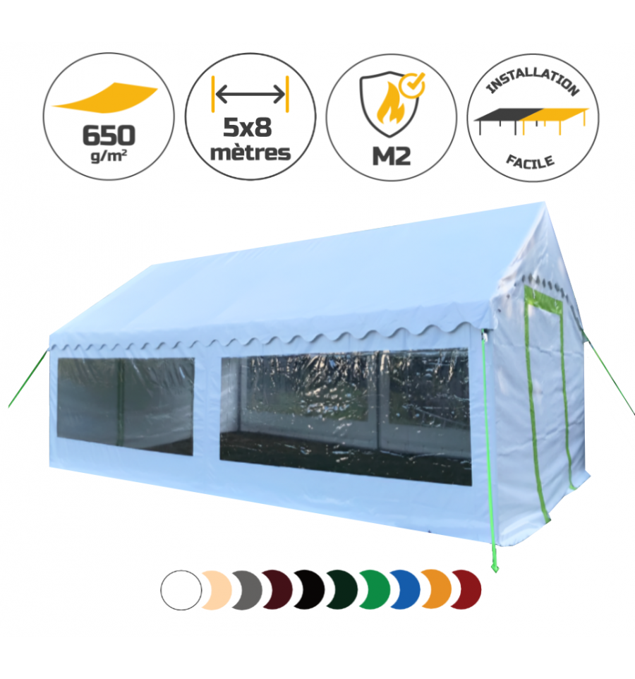 La tente de réception 5x8 mètres s'intègre naturellement à n'importe quel décor grâce à une large palette de coloris disponibles :