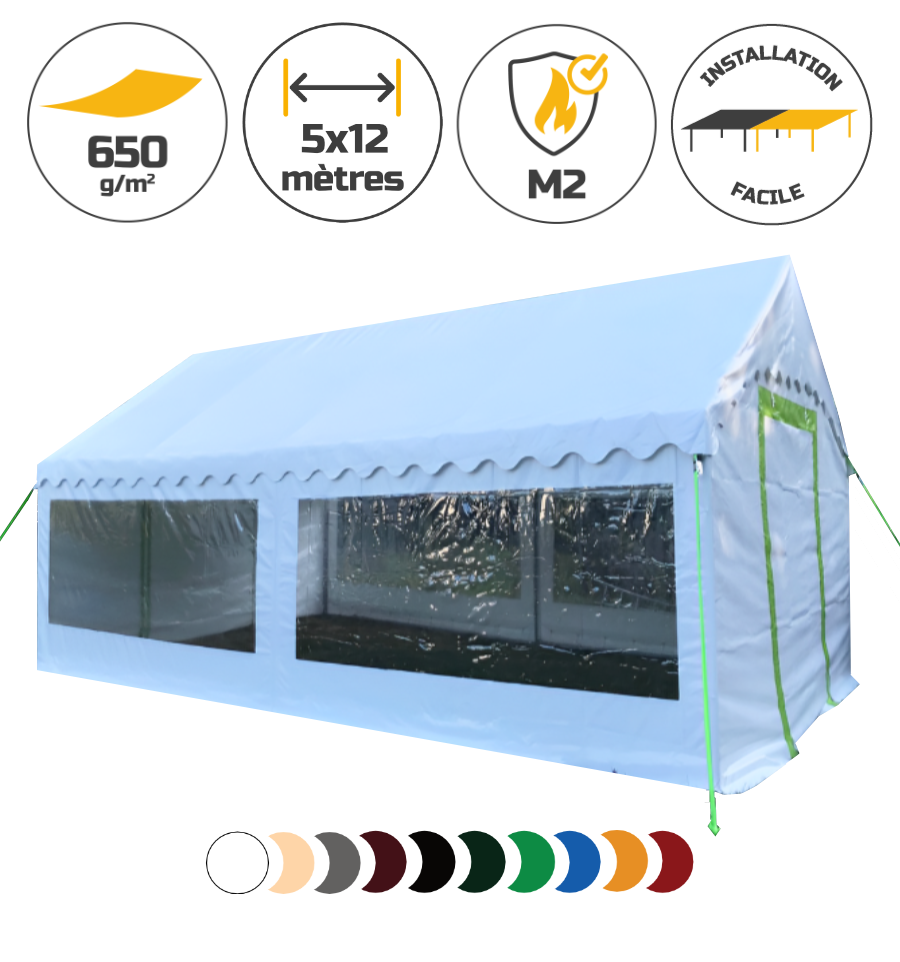La tente de réception 5x12 mètres doit être montée uniquement sur un sol stabilisé.