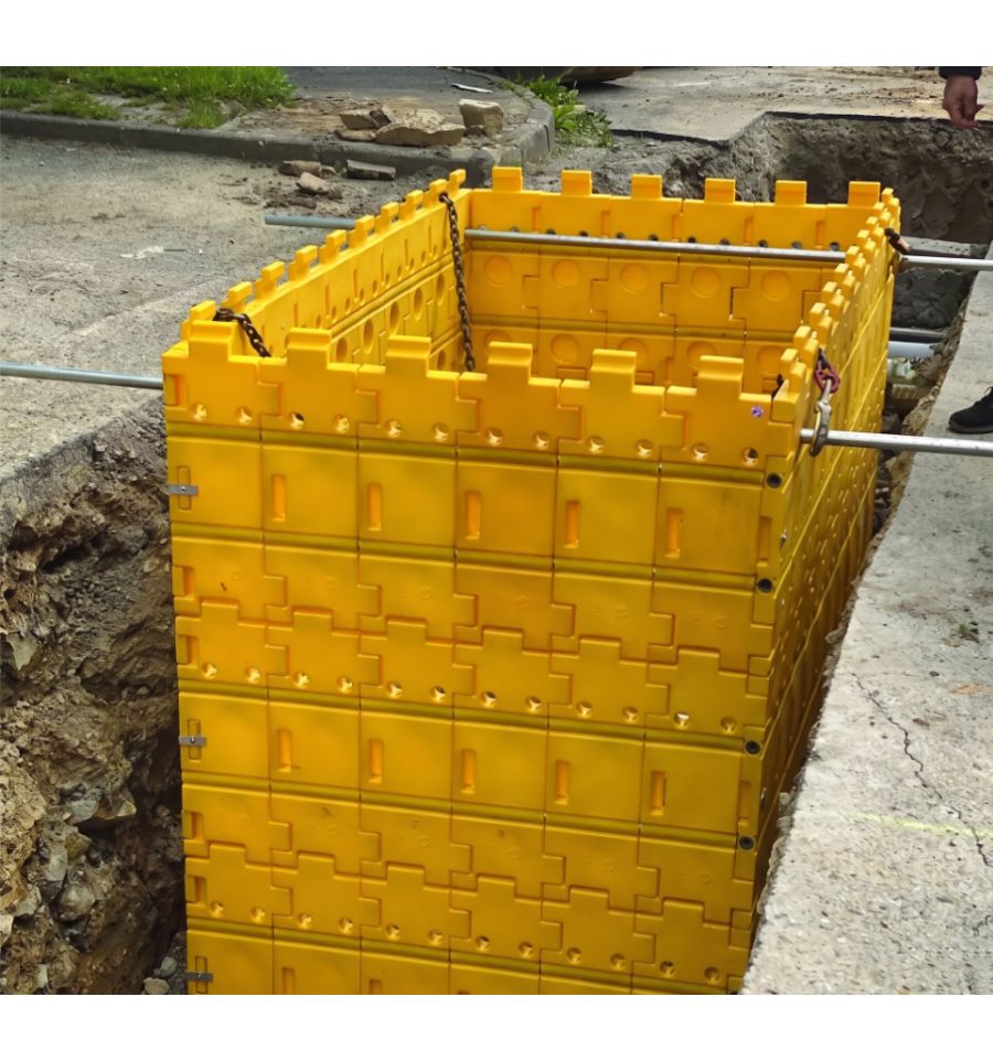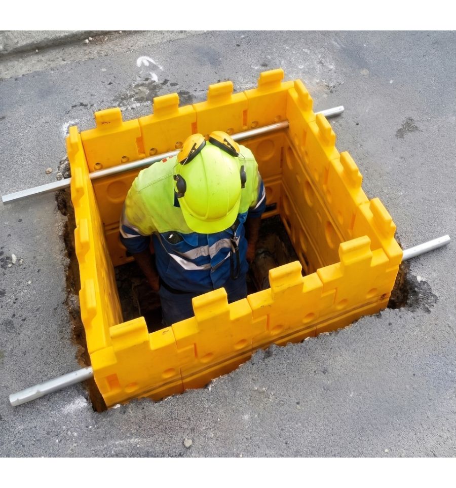 Ce système est idéal pour la sécurisation des fondations ou la réalisation d’ouvrages, en limitant les risques d’éboulement. Il est testé par le CETE-LRPC pour une utilisation jusqu'à 2,5 m de profondeur.