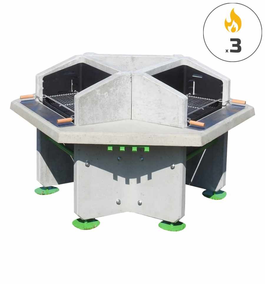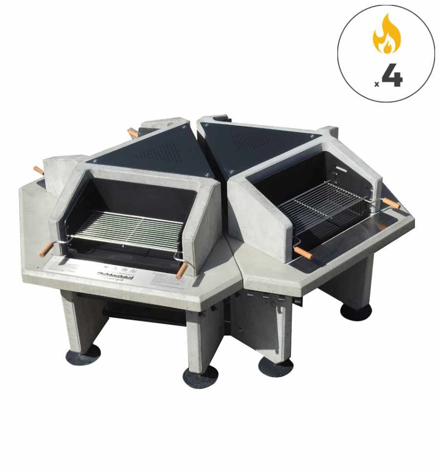 Disponible avec 1, 2 3 ou 4 foyers, ce barbecue s'adapte au niveau de fréquentation de votre espace.