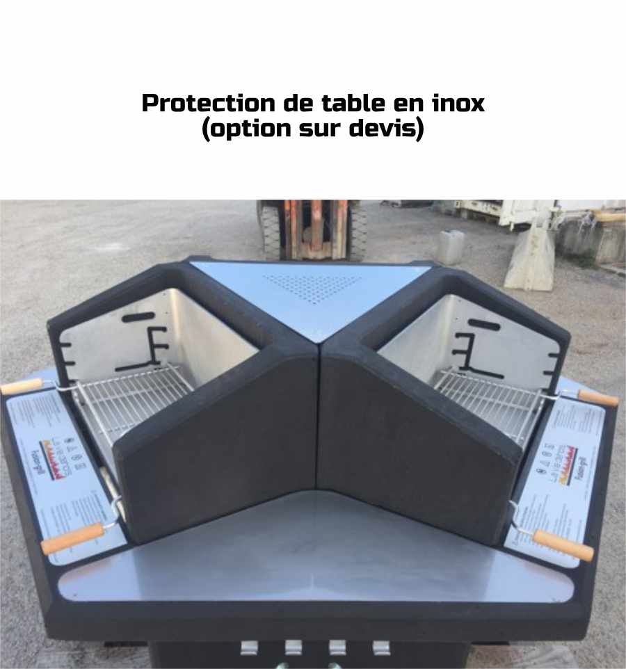 - Protections (protection table en inox, pare-étincelles en inox, pare-braise en inox)