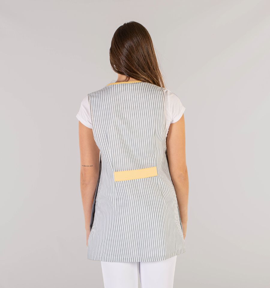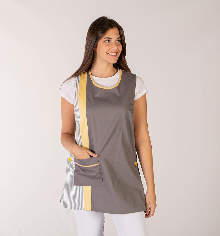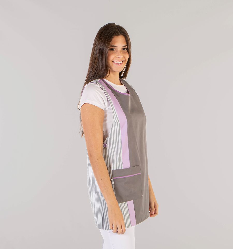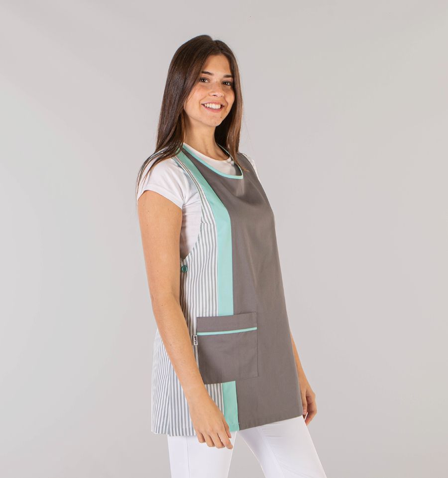 Facile à enfiler grâce à ses fentes latérales, elle s’enfile rapidement et s'adapte à chaque morphologie, notamment grâce à ses 3 tailles petite, moyenne ou grande. Sa poche frontale permet de garder à portée de main les objets indispensables : accessoires de nettoyage, stylos ou téléphone.