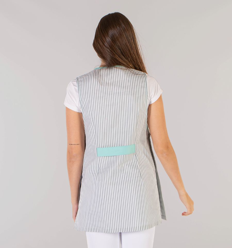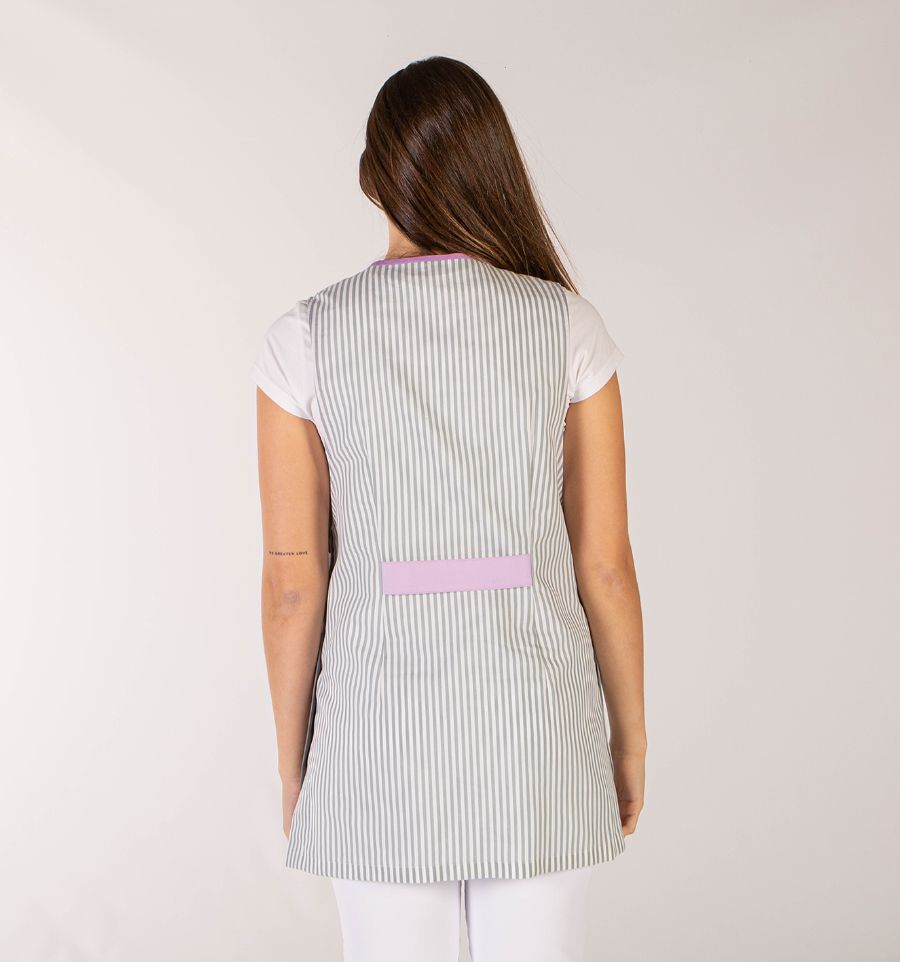 La chasuble de travail est disponible en trois couleurs différentes : lilas, aigue-marine et vanille.