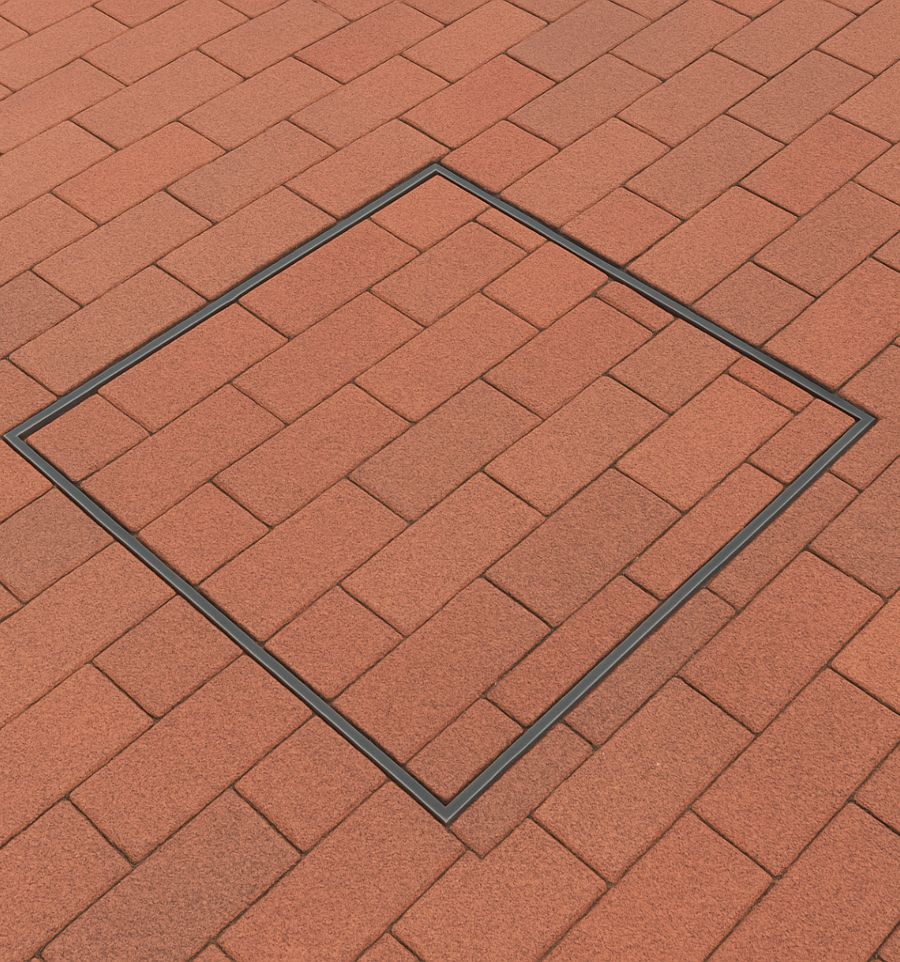Le tampon à paver 60x60 cm est fabriqué en fonte ductile. Il permet d'accéder aux différentes infrastructures souterraines en conservant l'apparence de la voirie.