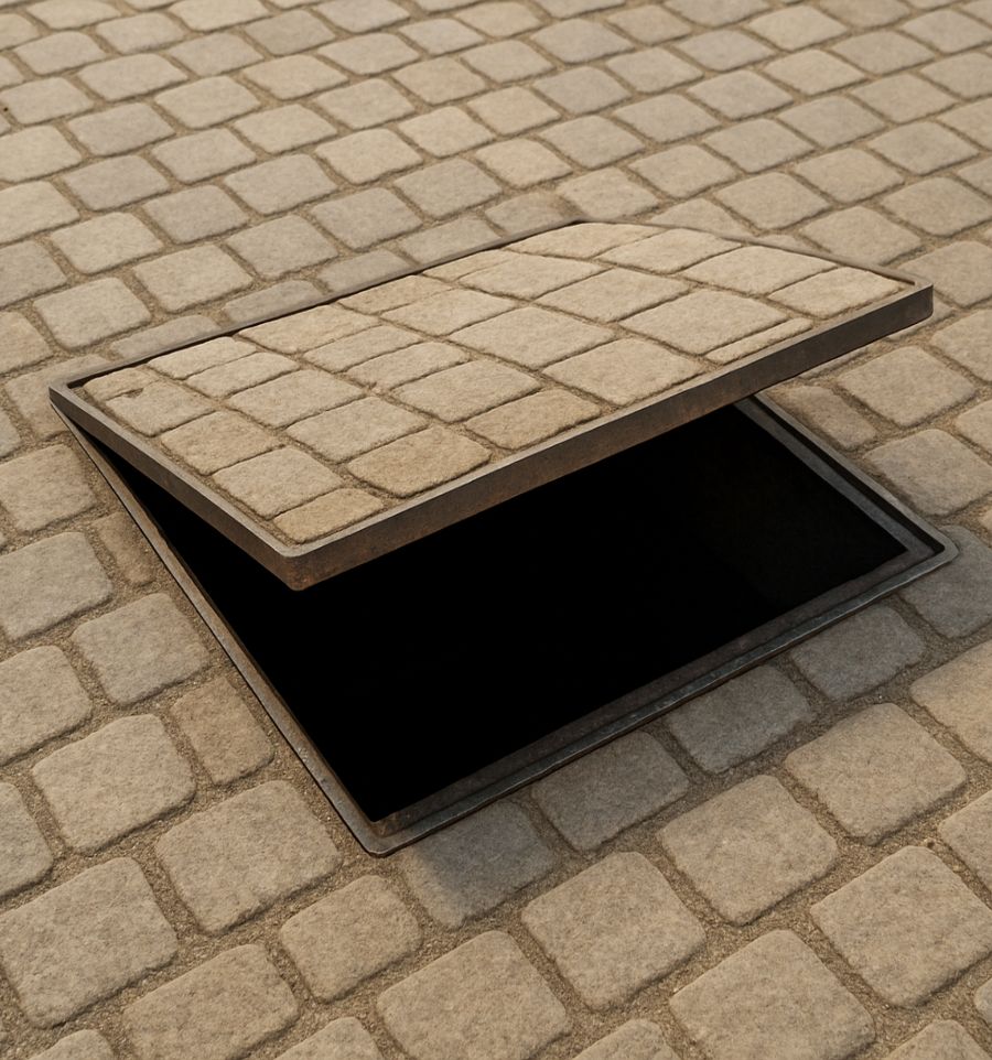 Notre tampon à paver 70x70 cm vous assure un accès simple et sécurisé aux installations souterraines tout en préservant l'aspect visuel de la chaussée.
