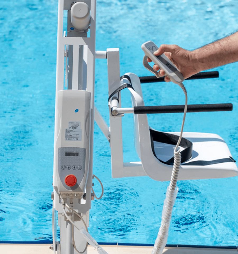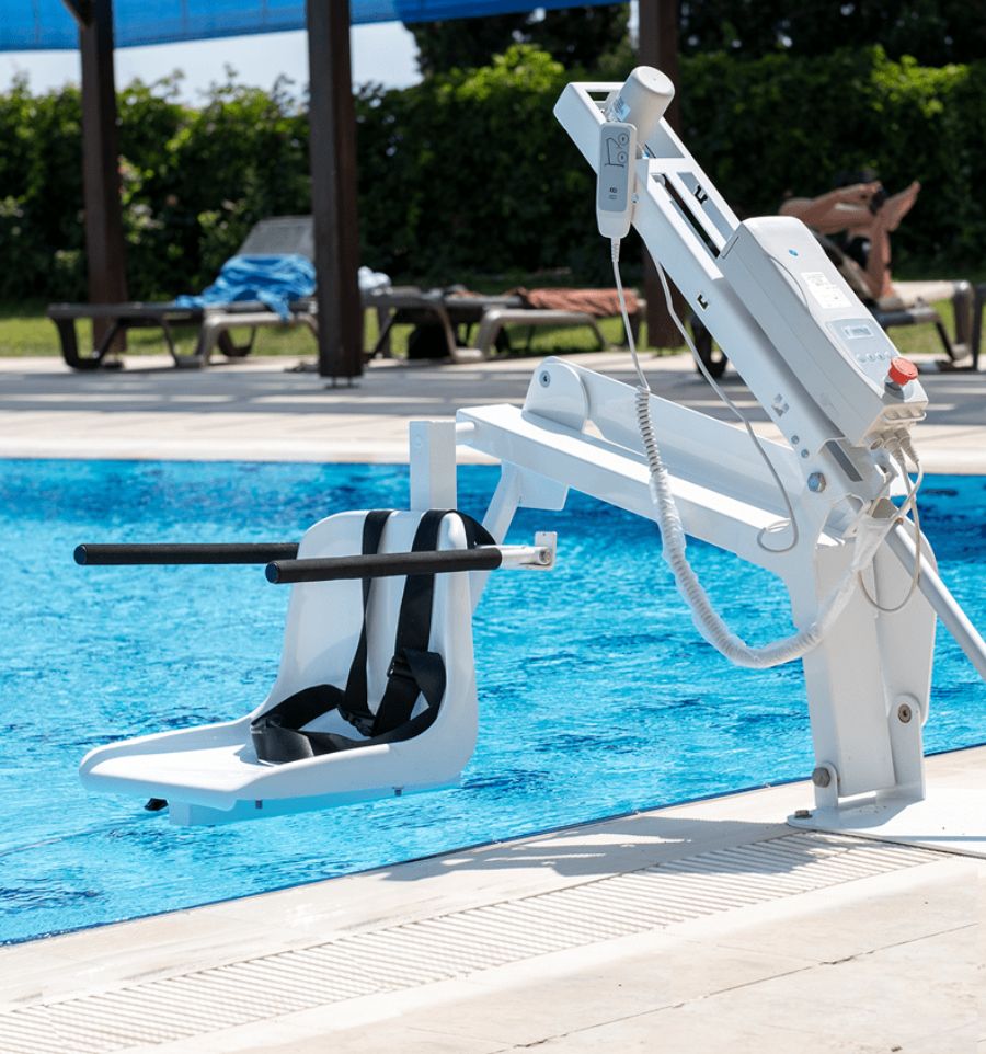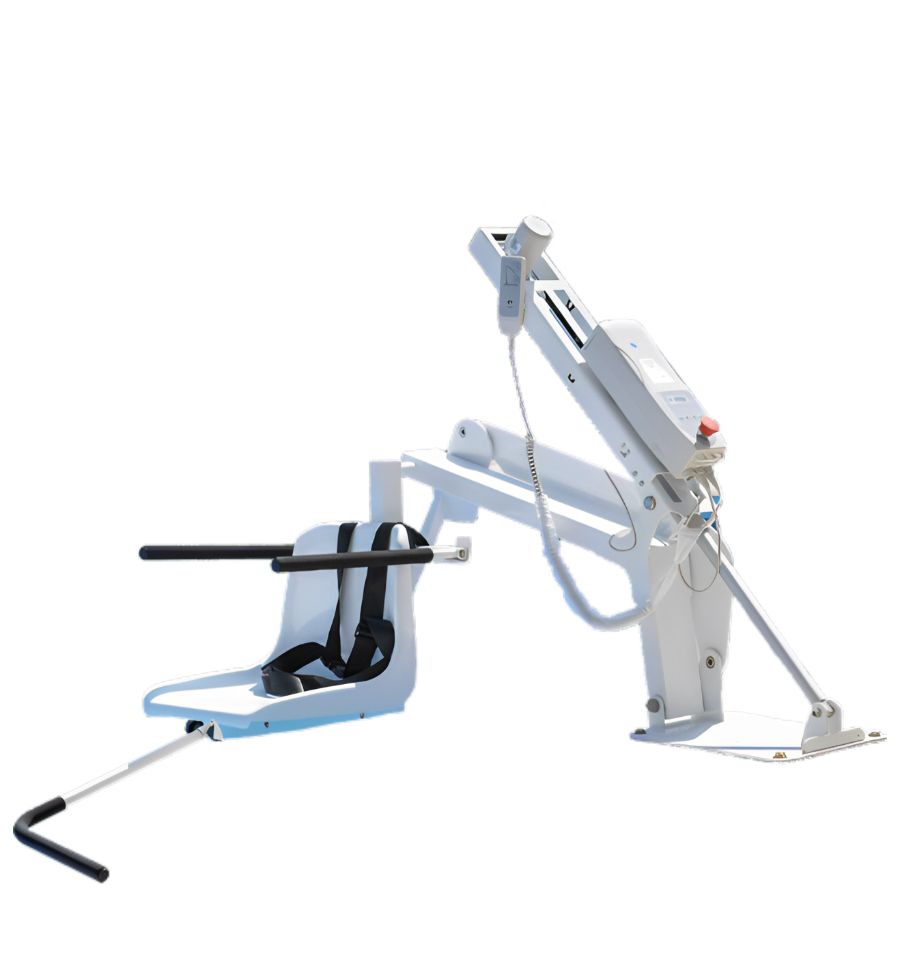 L'élévateur de piscine fixe professionnel est une solution idéale qui permet le transfert d'une personne à mobilité réduite dans un bassin de baignade, en toute sécurité et simplicité.