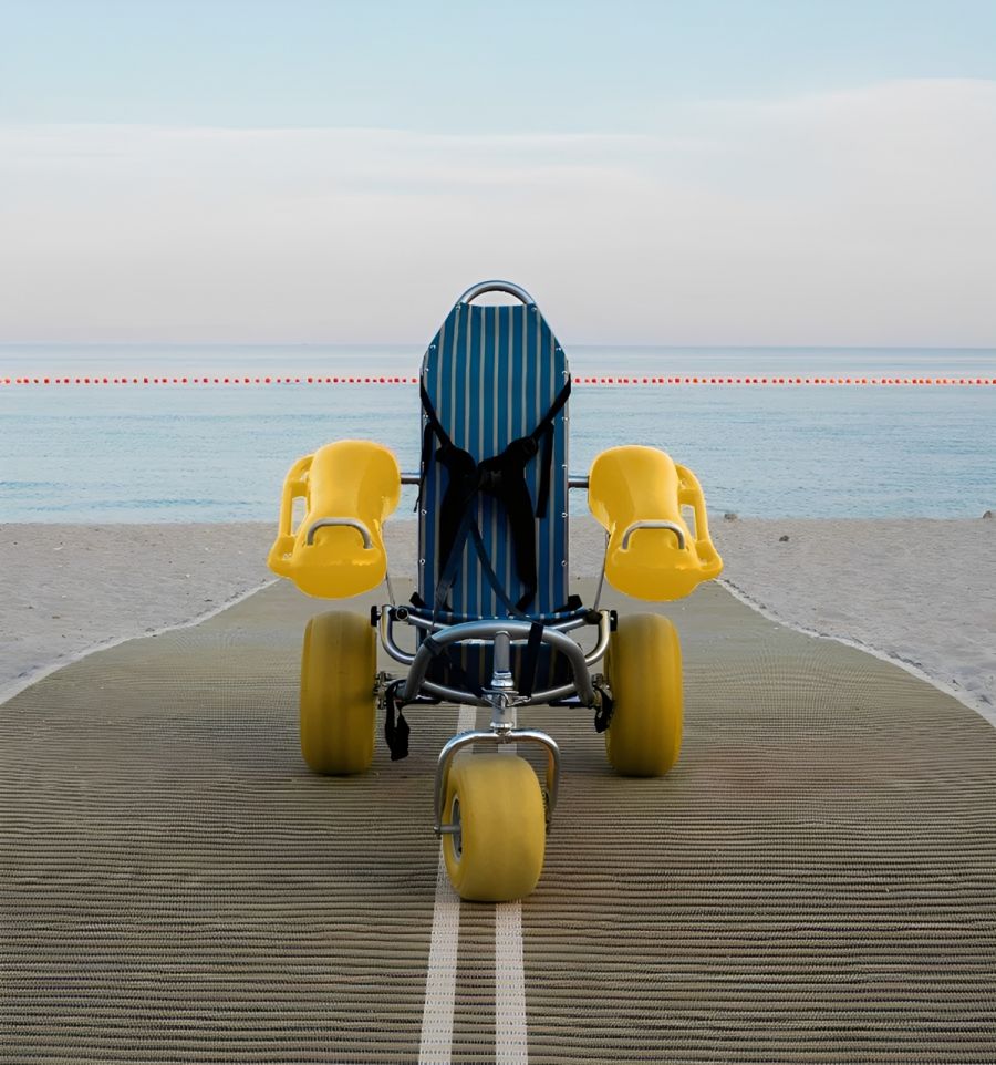 Le fauteuil de baignade PMR est aussi bien adapté pour les piscines que pour les plages, il respecte de ce fait des normes d'accessibilité.