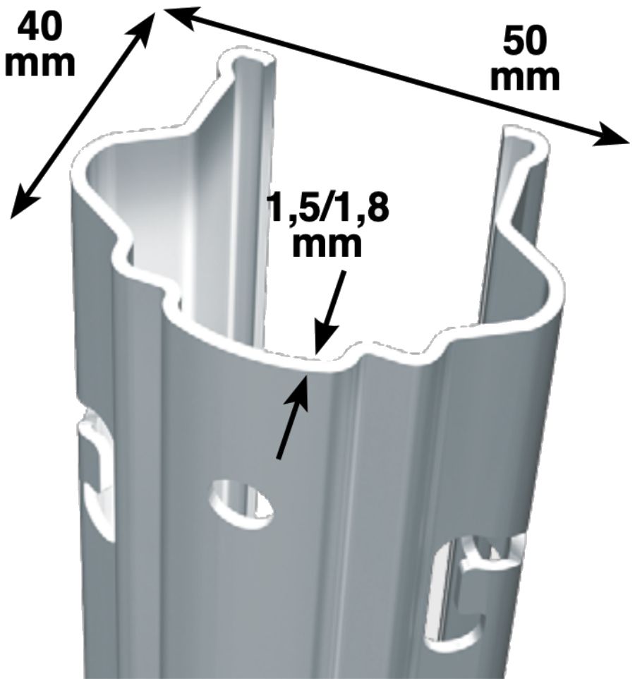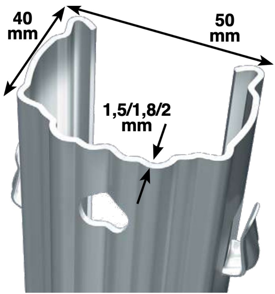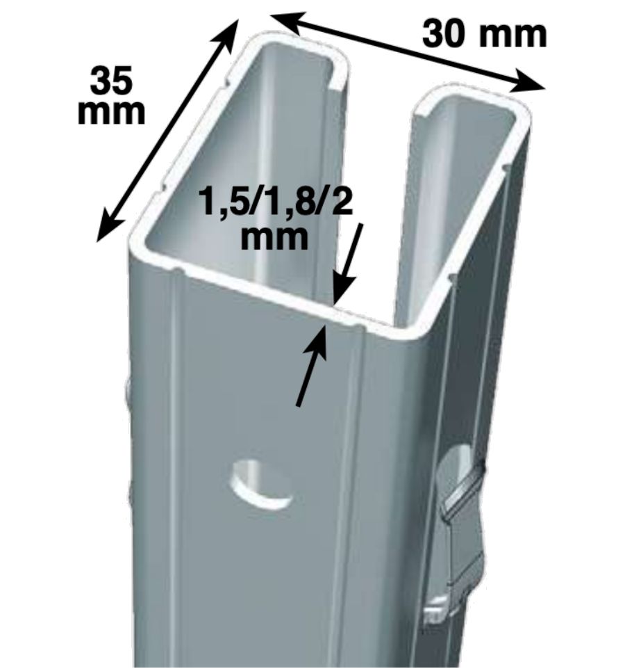 Vous pouvez choisir que le piquet soit en forme de U (lisse) ou en forme de C (profilé).