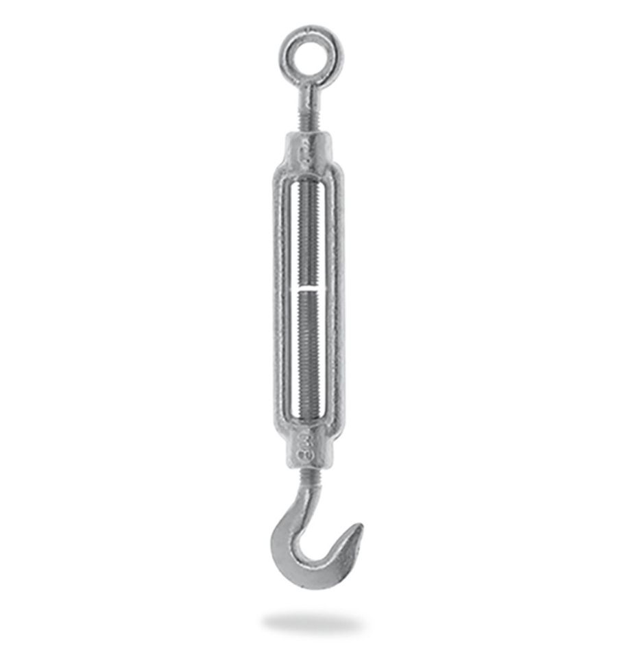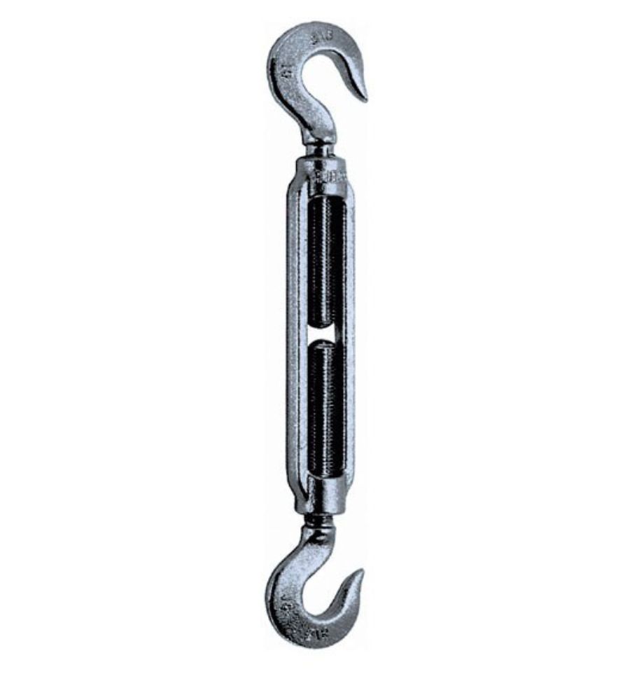 - Tendeur avec deux crochets : les deux côtés sont ouverts ce qui permet d'avoir une pose et une dépose rapide. Il est utilisé pour des clôtures temporaires et des palissages légers ou démontables.