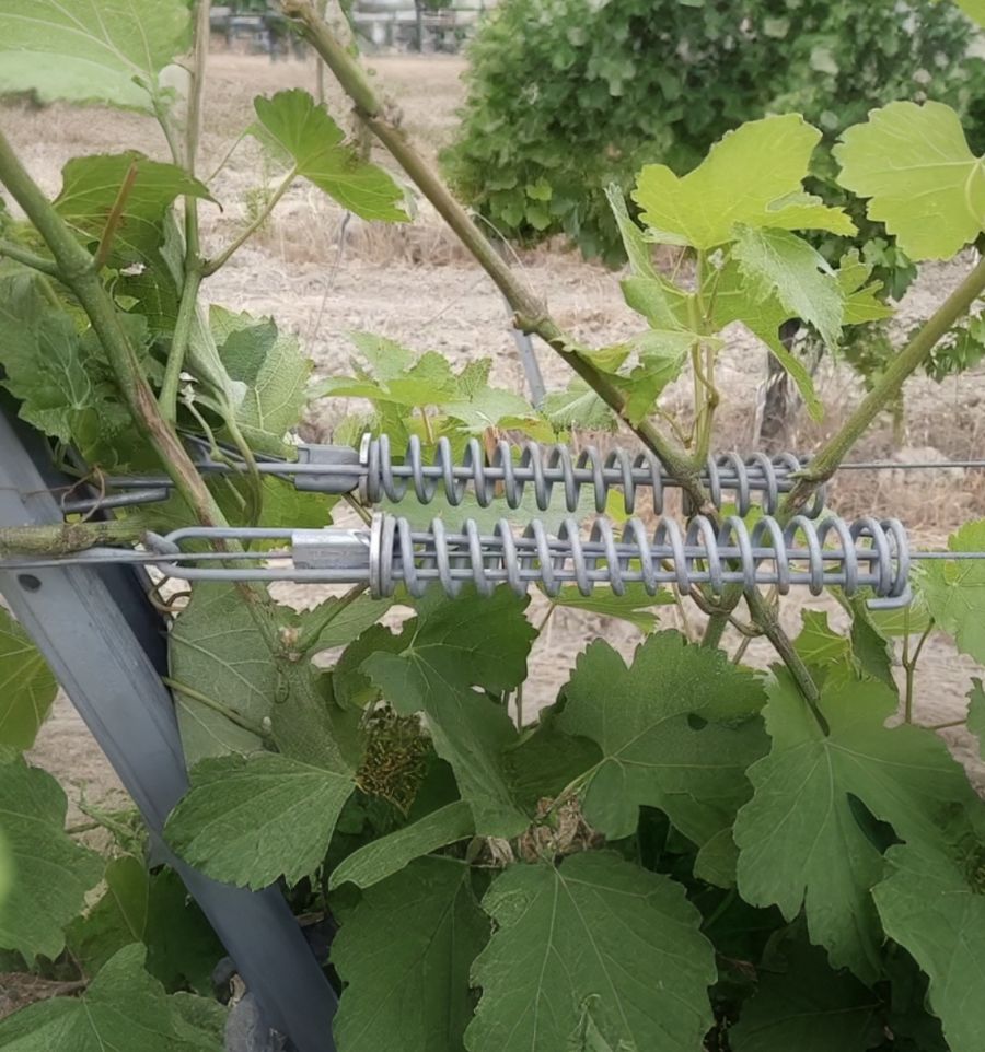Le ressort fil de fer vigne s'installe sur tous les piquets de tête existants grâce à un étrier. Ces ressorts permettent à un fil en acier de retrouver l'élasticité d'un fil en polyester tout en gardant une robustesse et donc une longue durée de vie.