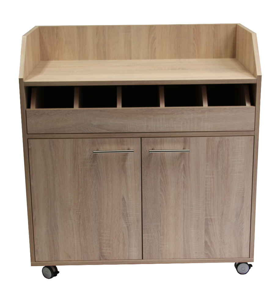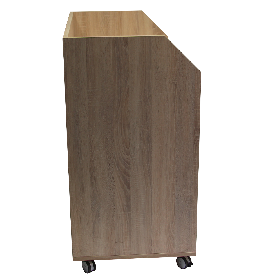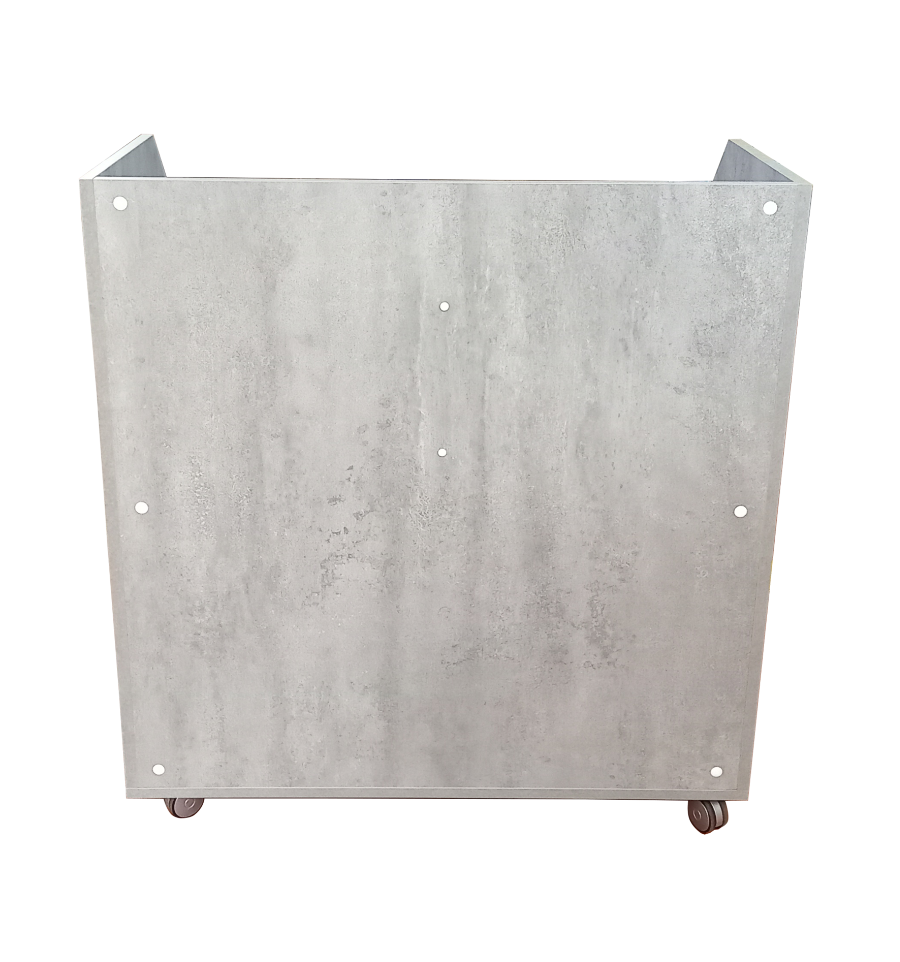 La desserte professionnelle basse, fabriquée en France, est conçue en bois aggloméré de 19 mm d'épaisseur avec une finition mélaminé décorative.