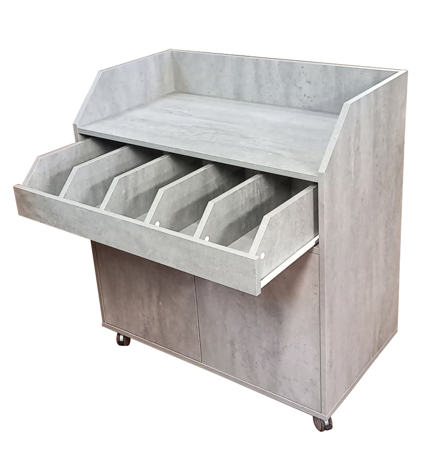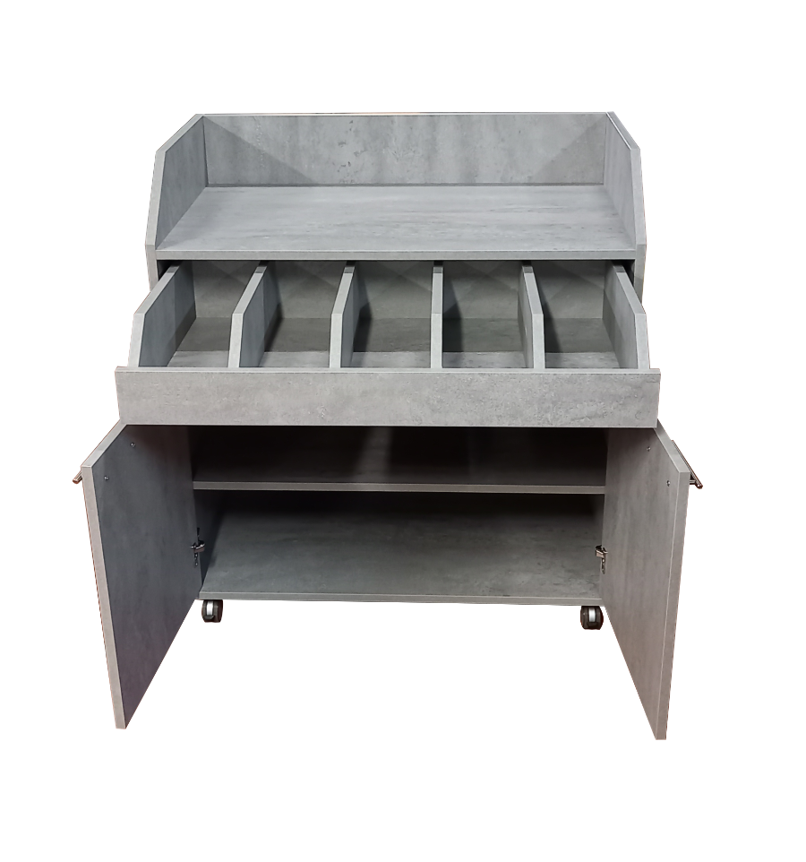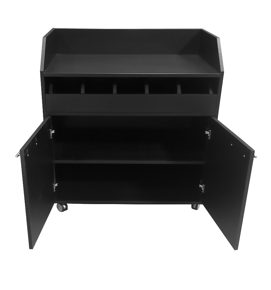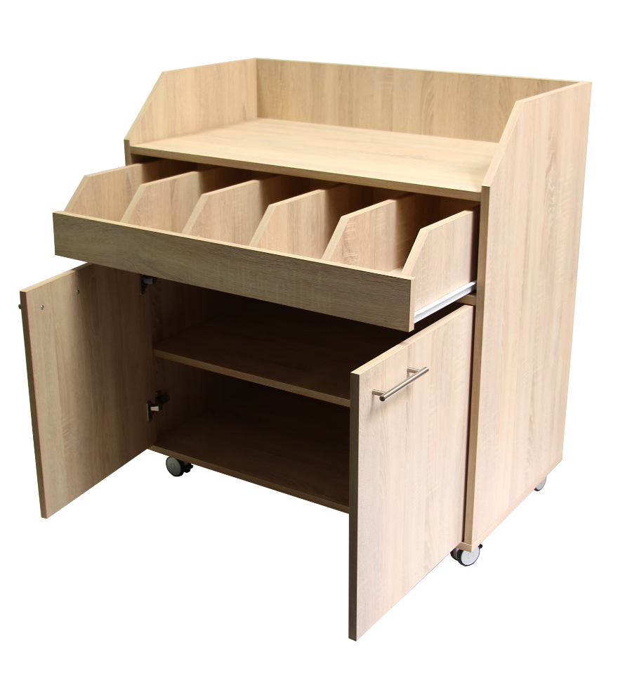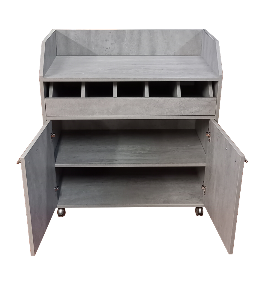 Dans le même design, nous proposons aussi la desserte vaisselier restaurant ainsi que le meuble d'accueil client.