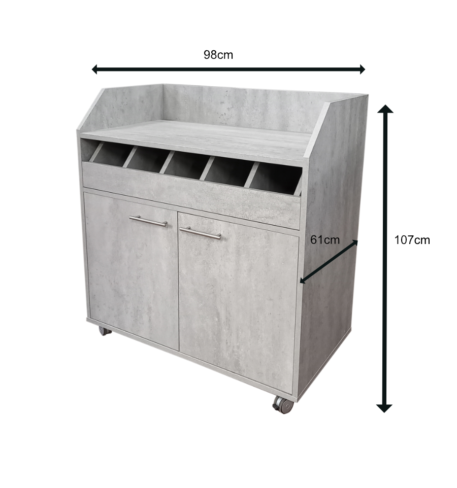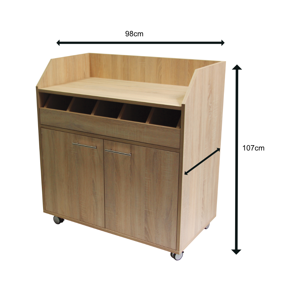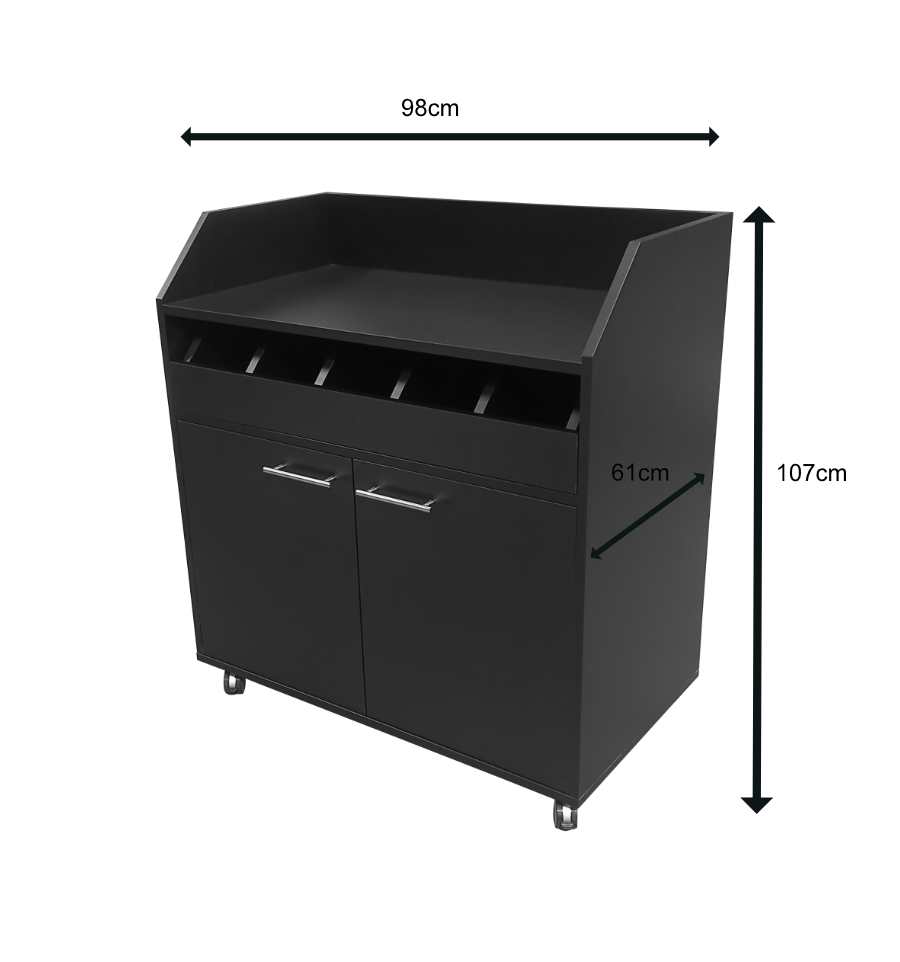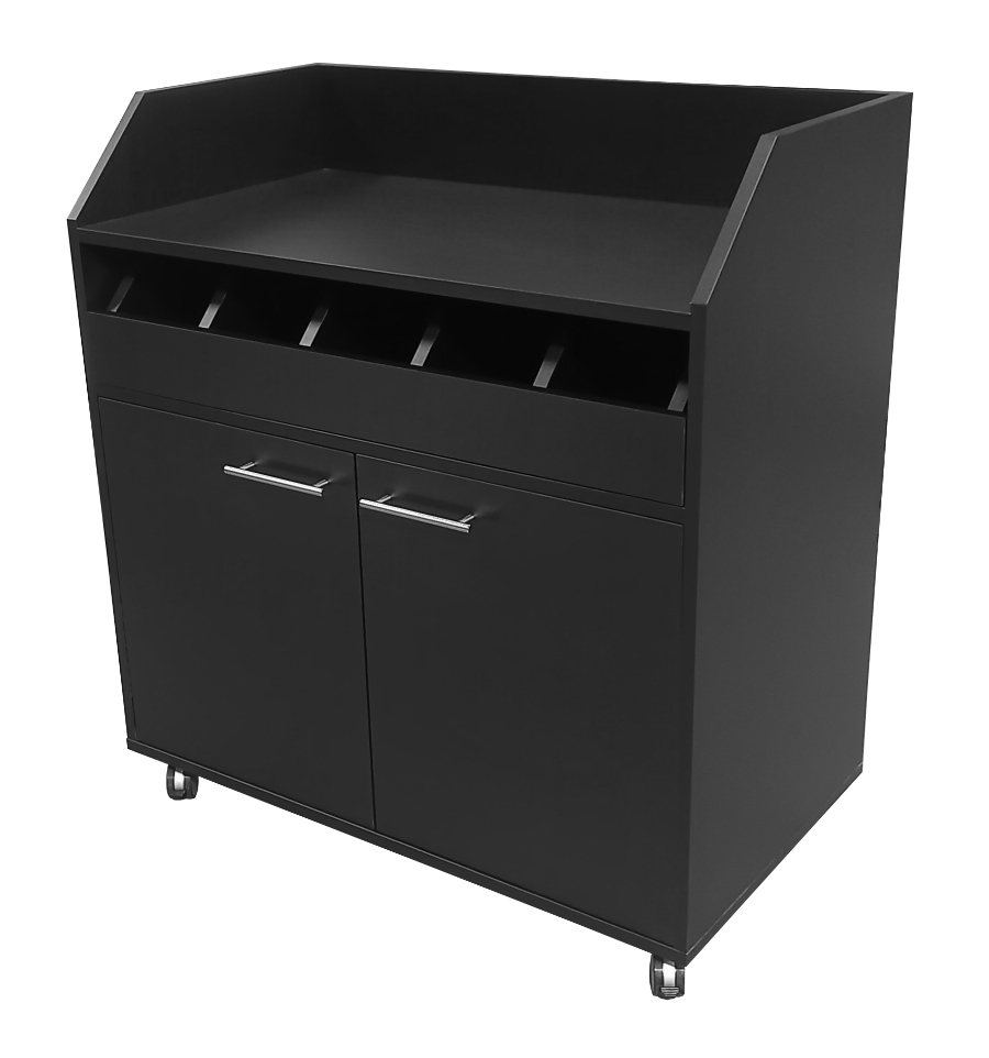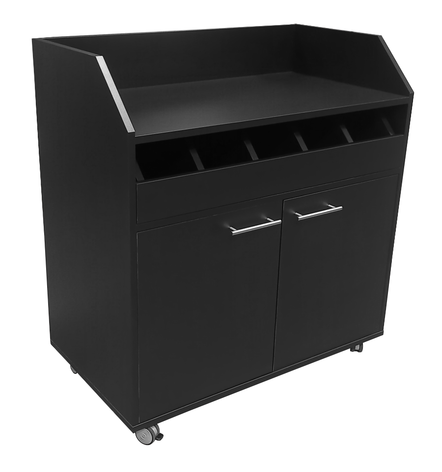 Équipée de roulettes pivotantes dont 2 munies de freins, cette desserte se déplace facilement et se verrouille en toute sécurité lors de votre service.