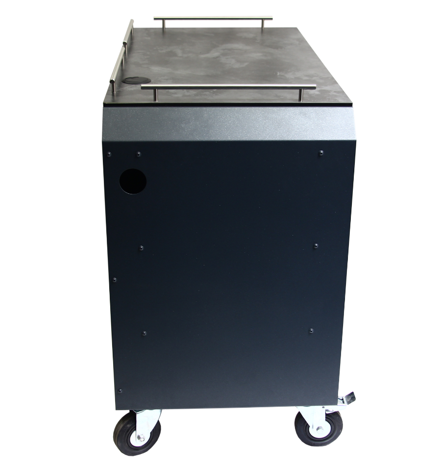 Cette desserte basse est spécialement conçue pour un usage en extérieur. Fabriquée en France, elle est dotée d'une structure et de tablettes en acier 15/100ᵉ avec une finition thermolaqué résistante.