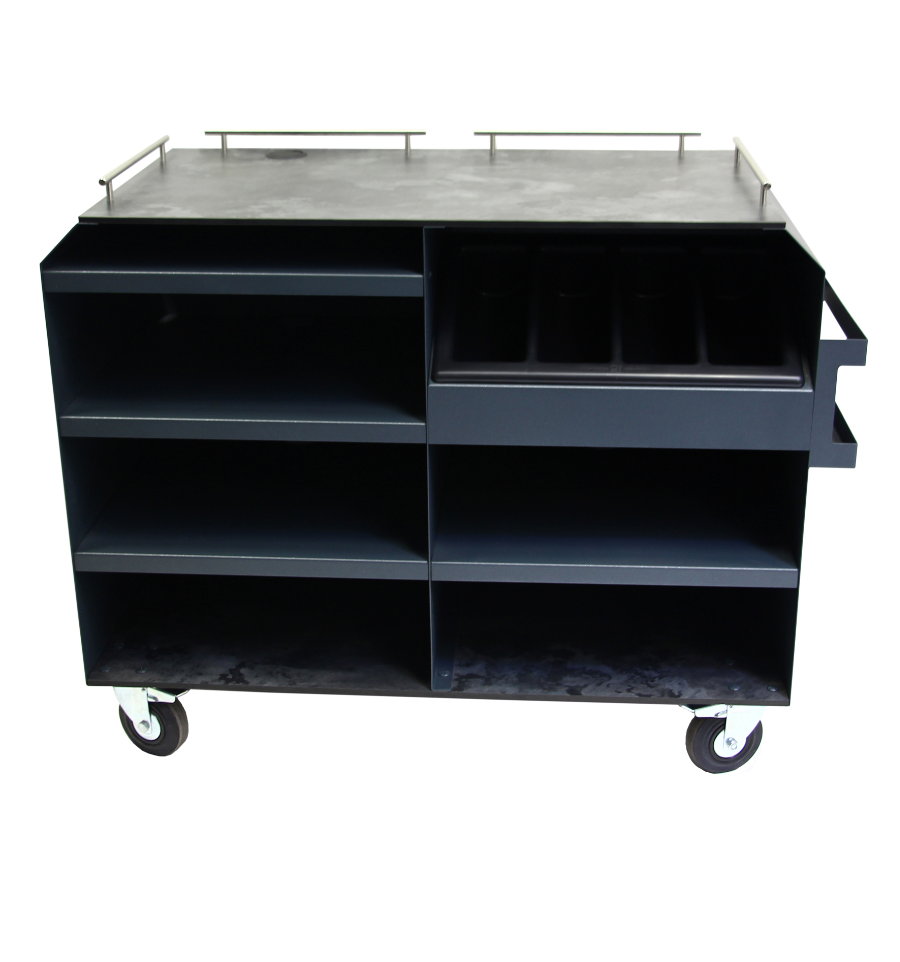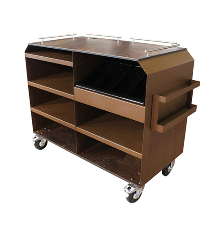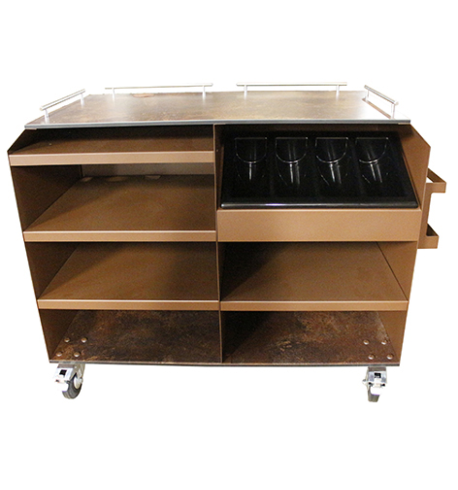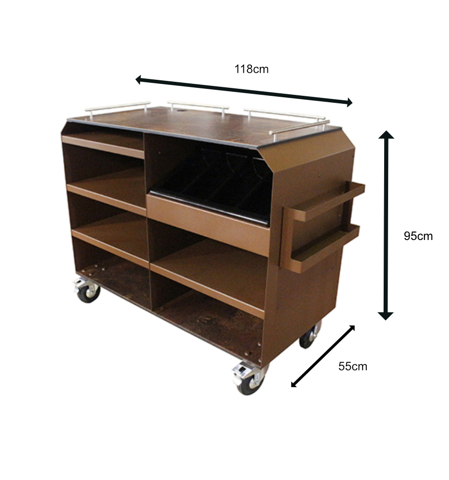 Elle est équipée d'un plateau supérieur et inférieur compacts pour offrir un espace de rangement pratique pour transporter assiettes, verres ou accessoires de dressage.
