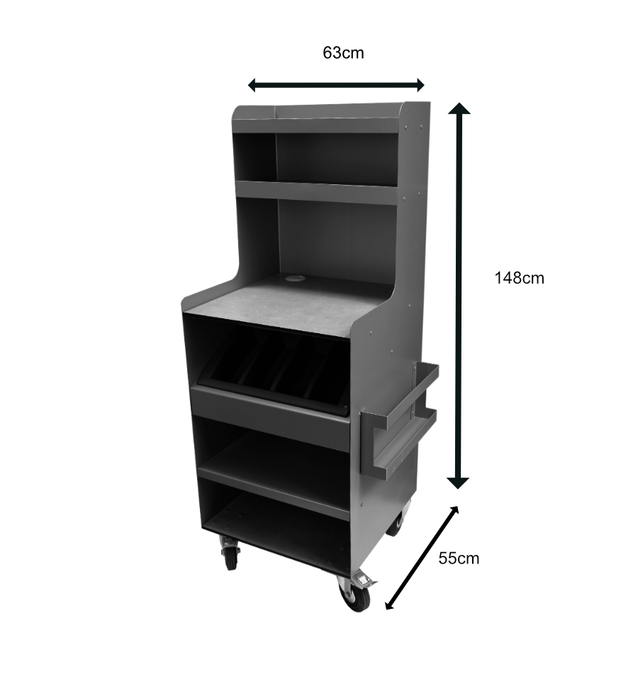 Cette desserte extérieure en acier, fabriquée en France, est spécialement conçue pour répondre aux besoins des professionnelles de la restauration.