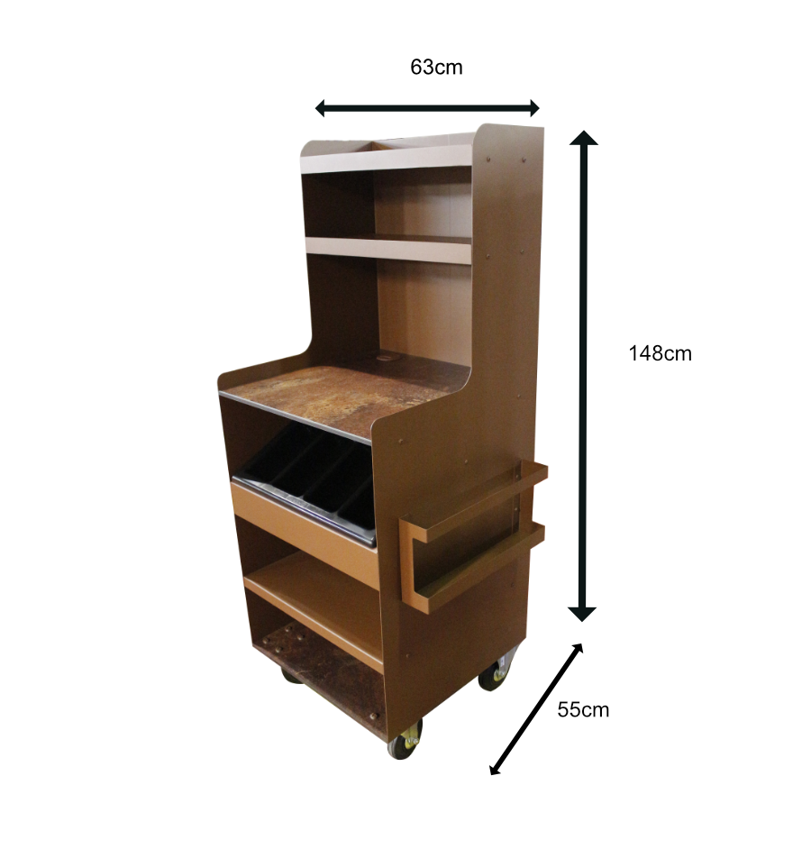 Sa haute structure permet d'optimiser le rangement : vaisselle, couverts, plateaux ou encore matériels de service. Grâce à son plateau supérieur et son plateau inférieur, vos équipes disposent d'espaces fonctionnels pour organiser et fluidifier le service en salle.