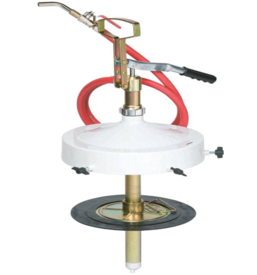 Découvrez la pompe à graisse manuelle portable à gros débit. Elle convient parfaitement pour des fûts de 16 à 30 kg et de diamètre externe de 270 à 330 mm.
