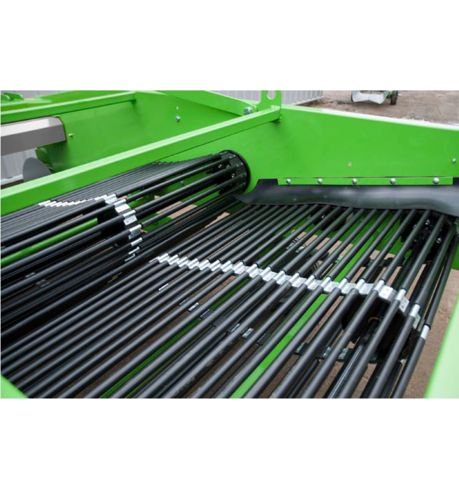 Sur cette machine, vous pouvez choisir le nombre de tapis convoyeur allant de 1 à 2. Les tapis convoyeur sont dotés de barreaux avec revêtement en caoutchouc pour éviter que les pommes de terre ne s'abîment.