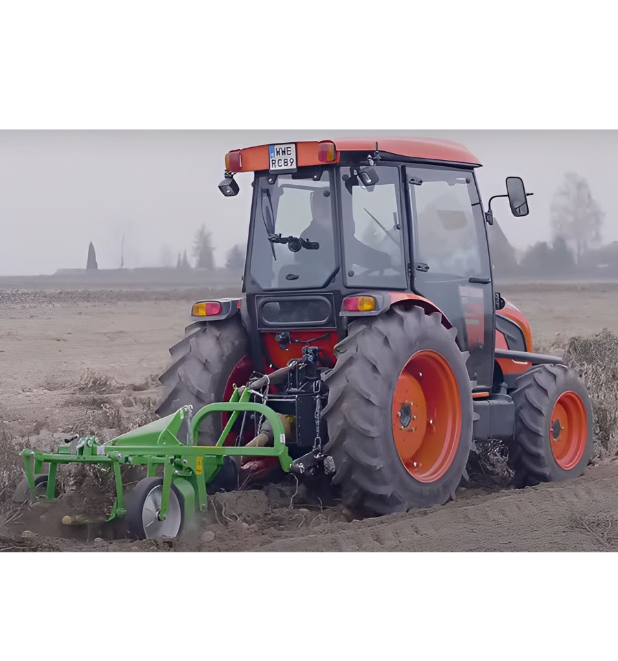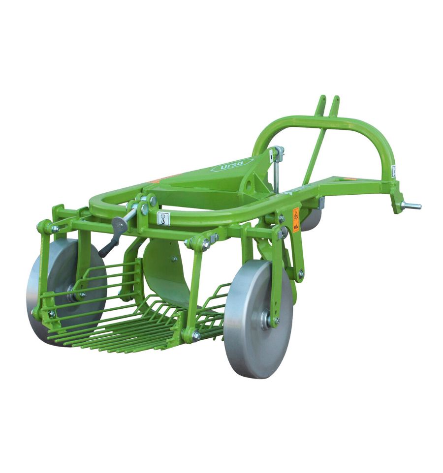 L'arracheuse pomme de terre dispose d'une rangée. La largeur de partage est de 45 cm, la profondeur de travail est de 20 cm et le poids de la machine s'élève à 135 kg.