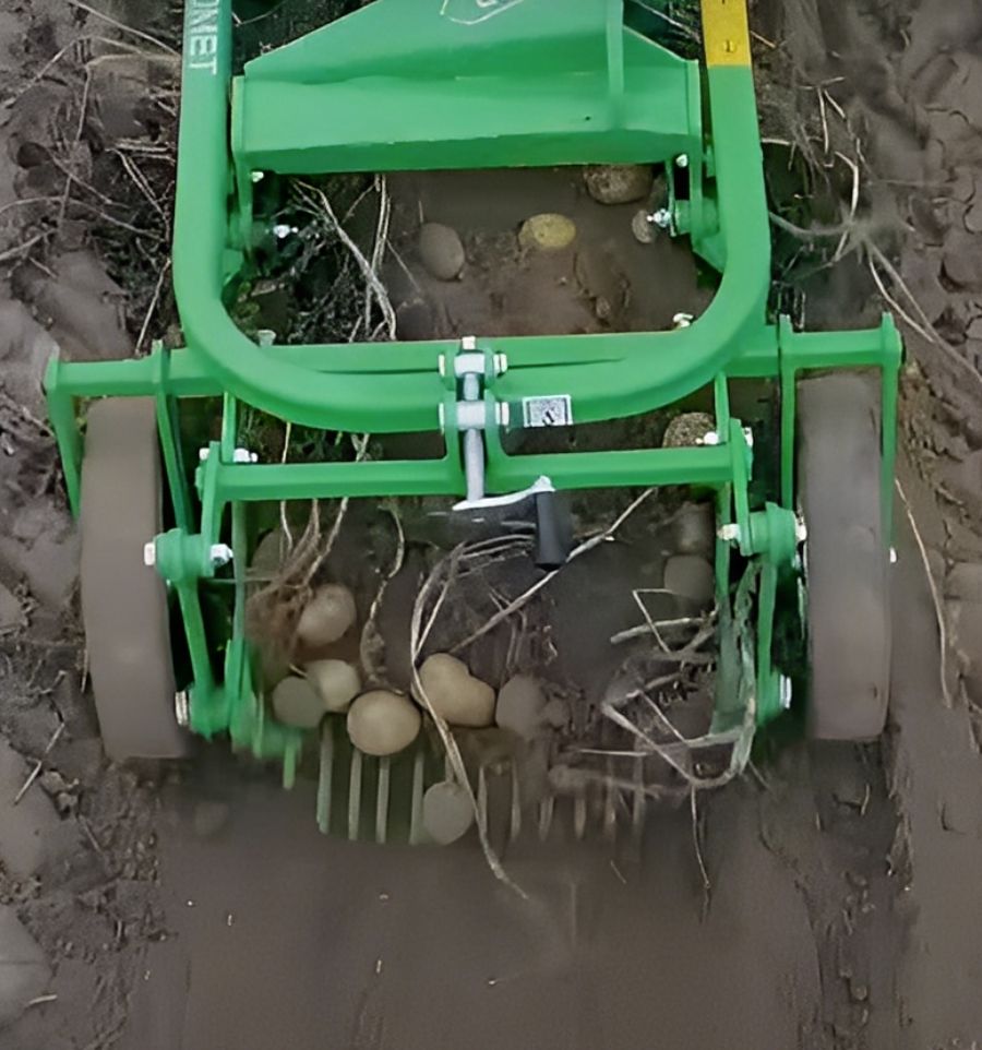 Cette machine agricole est destinée aux cultivateurs de pomme de terre. Elle se place à l'arrière d'un micro tracteur et vient creuser dans la terre afin d'en retirer les pommes de terre.