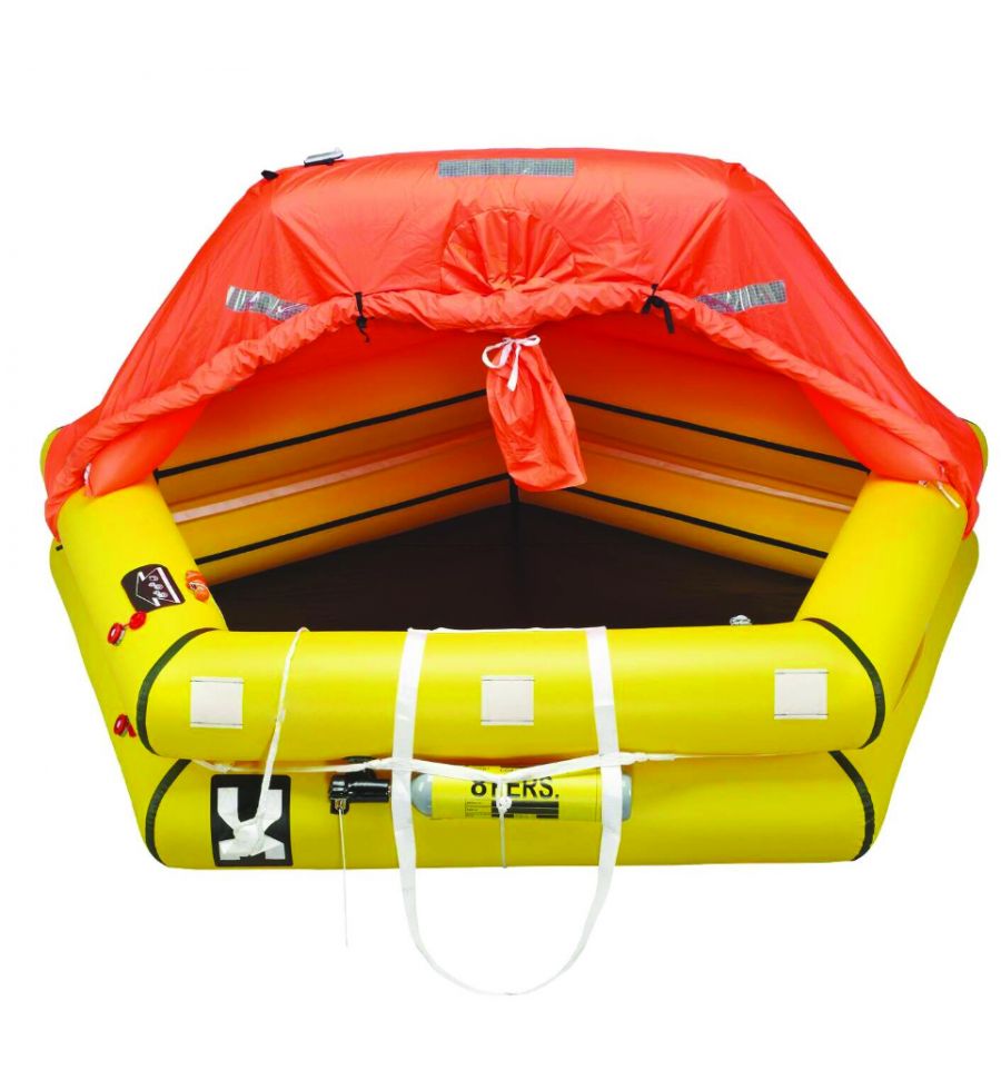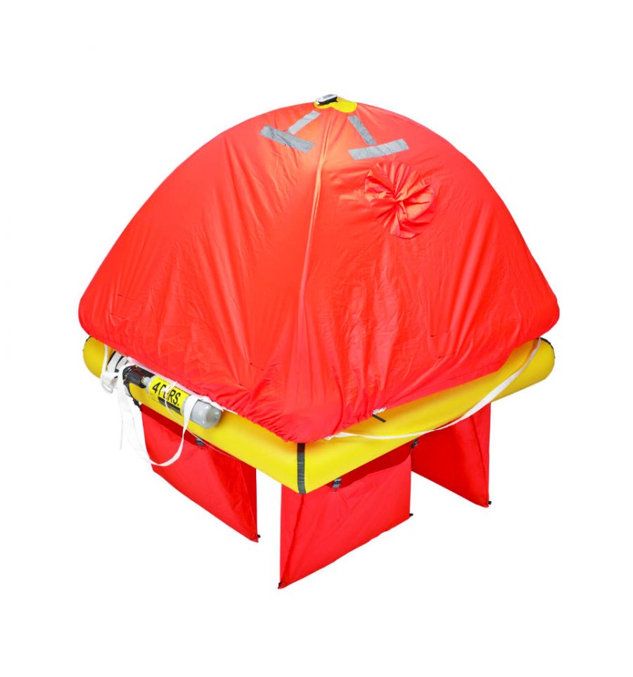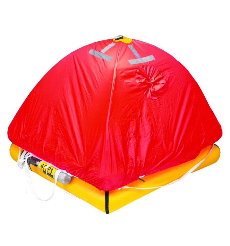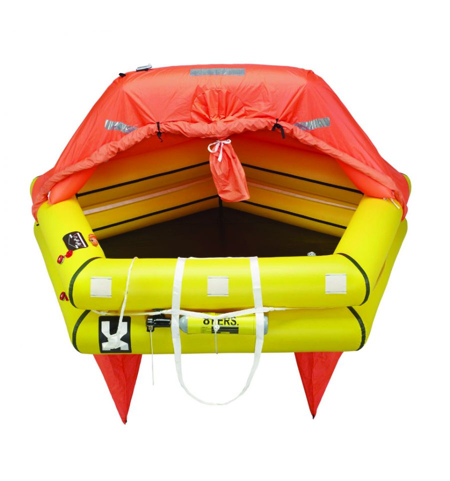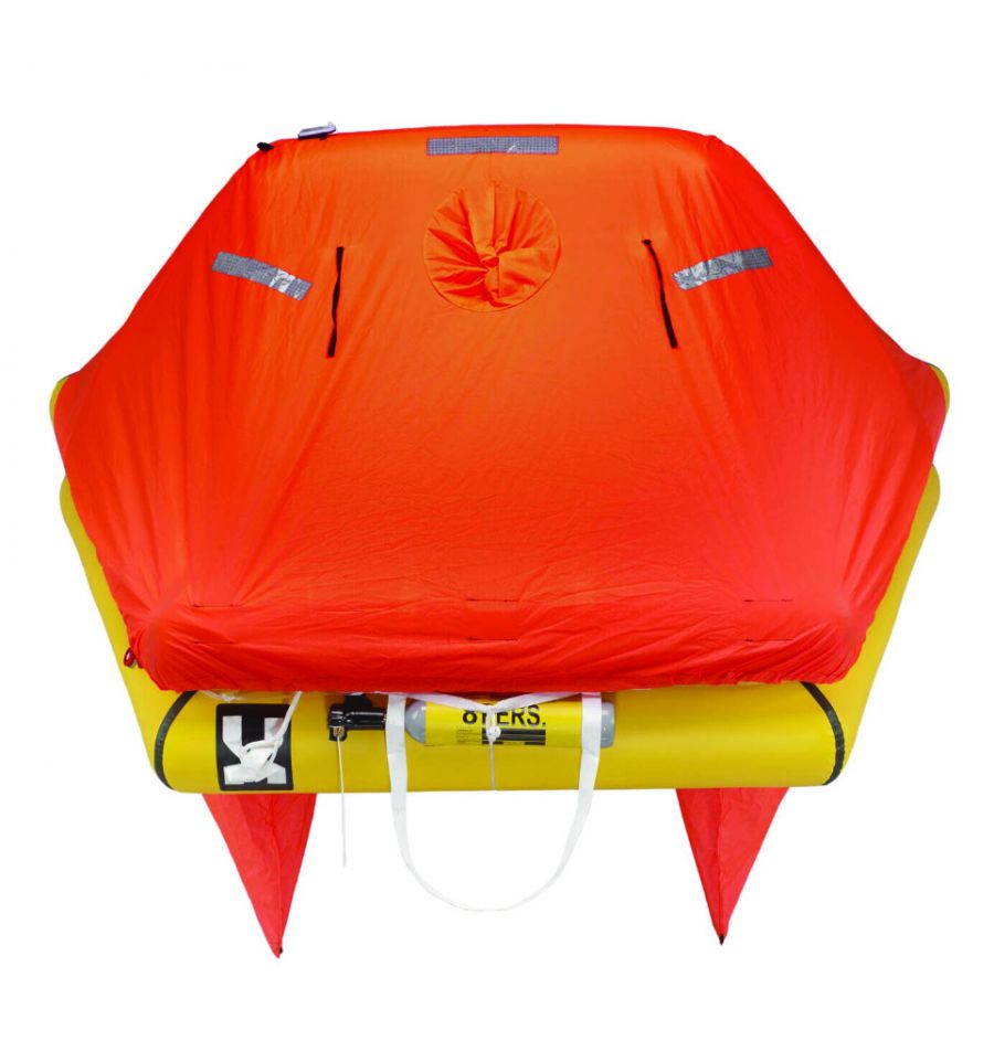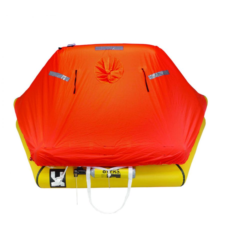 Le radeau de survie iso 9650-2 est conçu pour une utilisation côtière. Toile de tente orange fluo et bandes rétro-réfléchissantes pour être très visible.