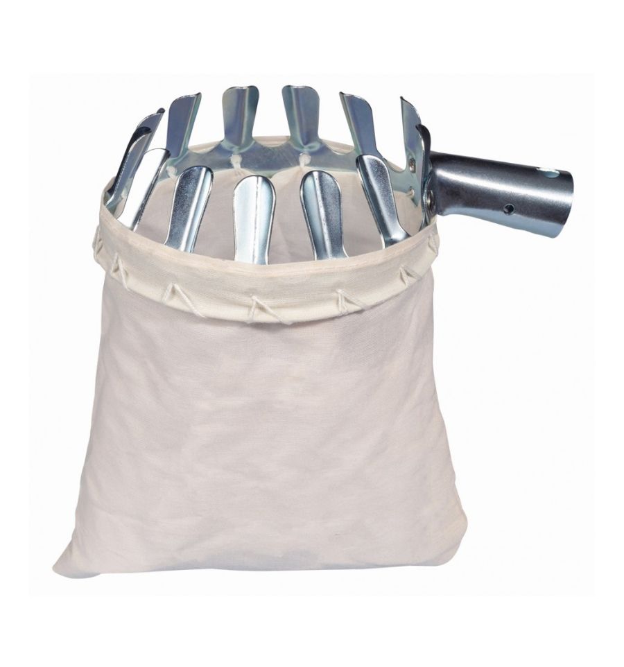 La tête de la perche ramasse fruit est en métal traité et le sac qui reçoit les fruits est en coton.