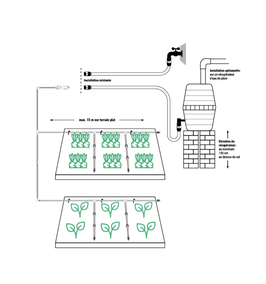 | Débit des goutteurs | 2 l/h à 1 bar de pression |
