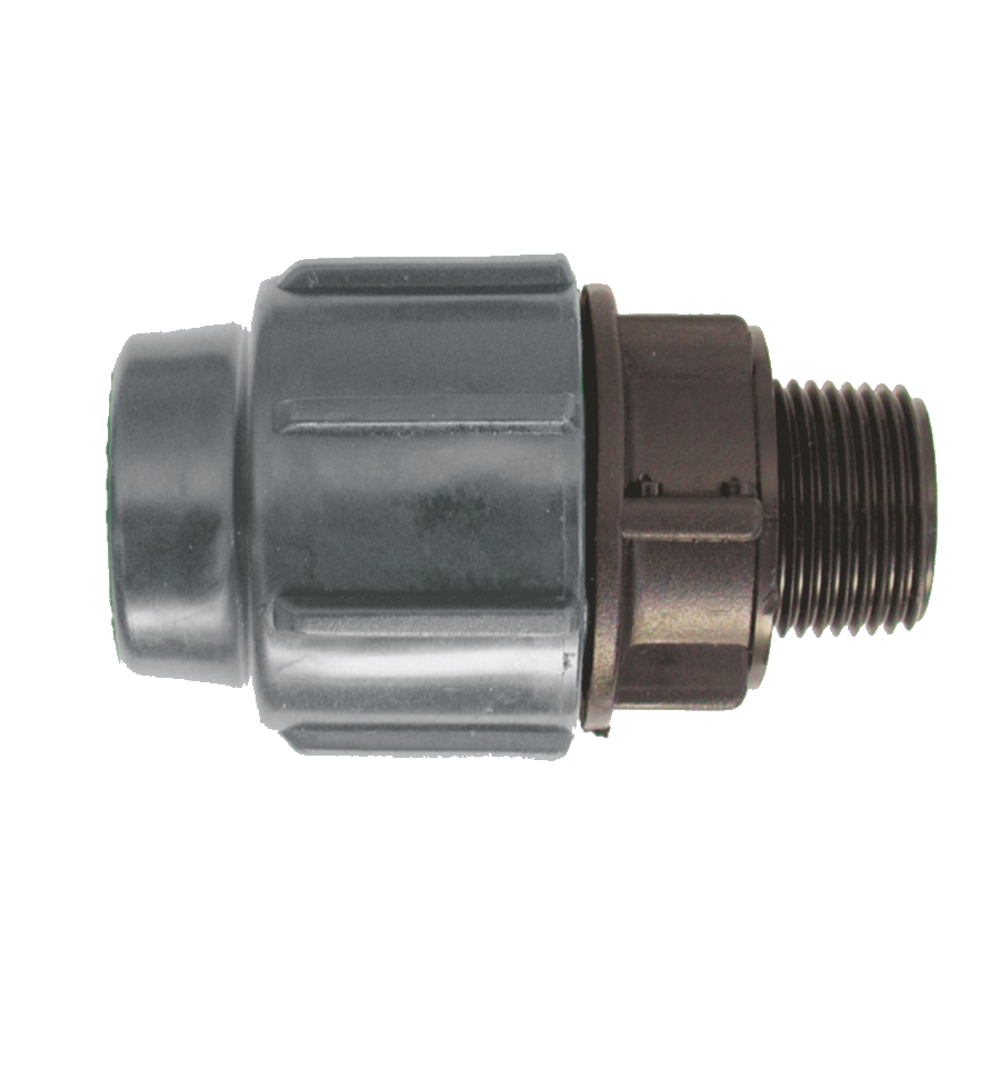 - Manchon mâle : Une extrémité reçoit un tuyau PE, l'autre possède un filetage mâle pour raccord un élément femelle au raccord, comme un robinet, une vanne, un filtre, un programmateur ou un autre accessoire.