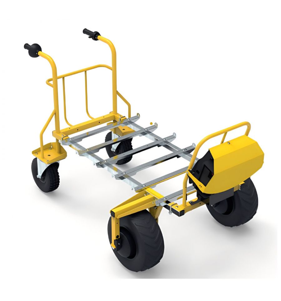 Elle permet avant tout de réduire considérablement la pénibilité du travail physique. Grâce à l’assistance électrique (batterie de 12V / 20Ah), il devient beaucoup plus facile de transporter des charges lourdes, notamment des caisses de récolte, du compost ou des outils, même sur des terrains en pente ou irréguliers.
