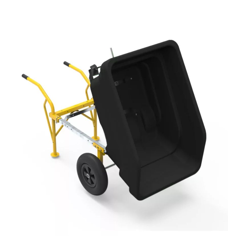 La benne basculante possède un angle de 96° qui permet de vider l’entièreté du bac en une seule fois optimisant ainsi le temps et l’effort. De plus, elle possède un système de verrouillage automatique. Ce mécanisme permet d’éviter tous les basculements non désirés, assurant une stabilité parfaite et une sécurité pour l’utilisateur, même sur les terrains accidentés ou en pente.