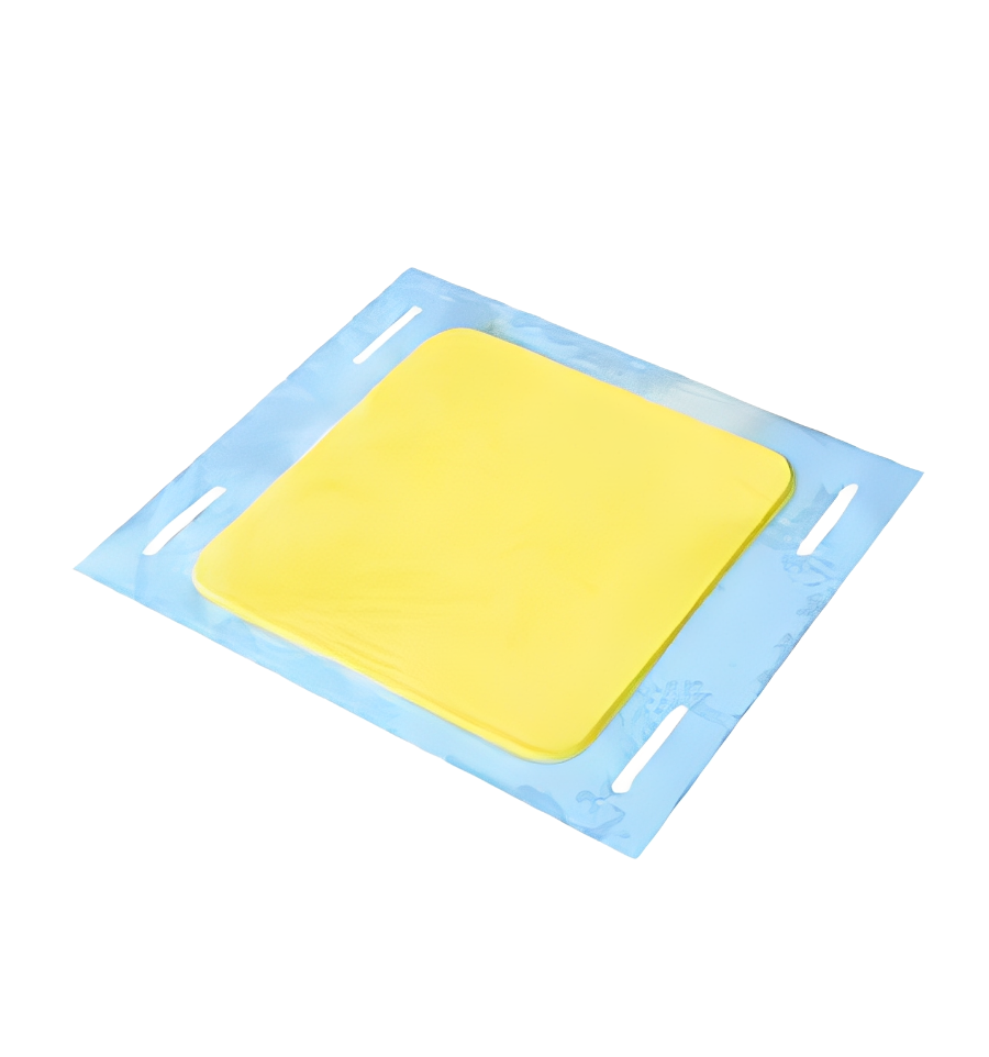 Fabriquée en gel de polyuréthane sur tissu siliconé, cette plaque obturatrice est lavable et réutilisable.