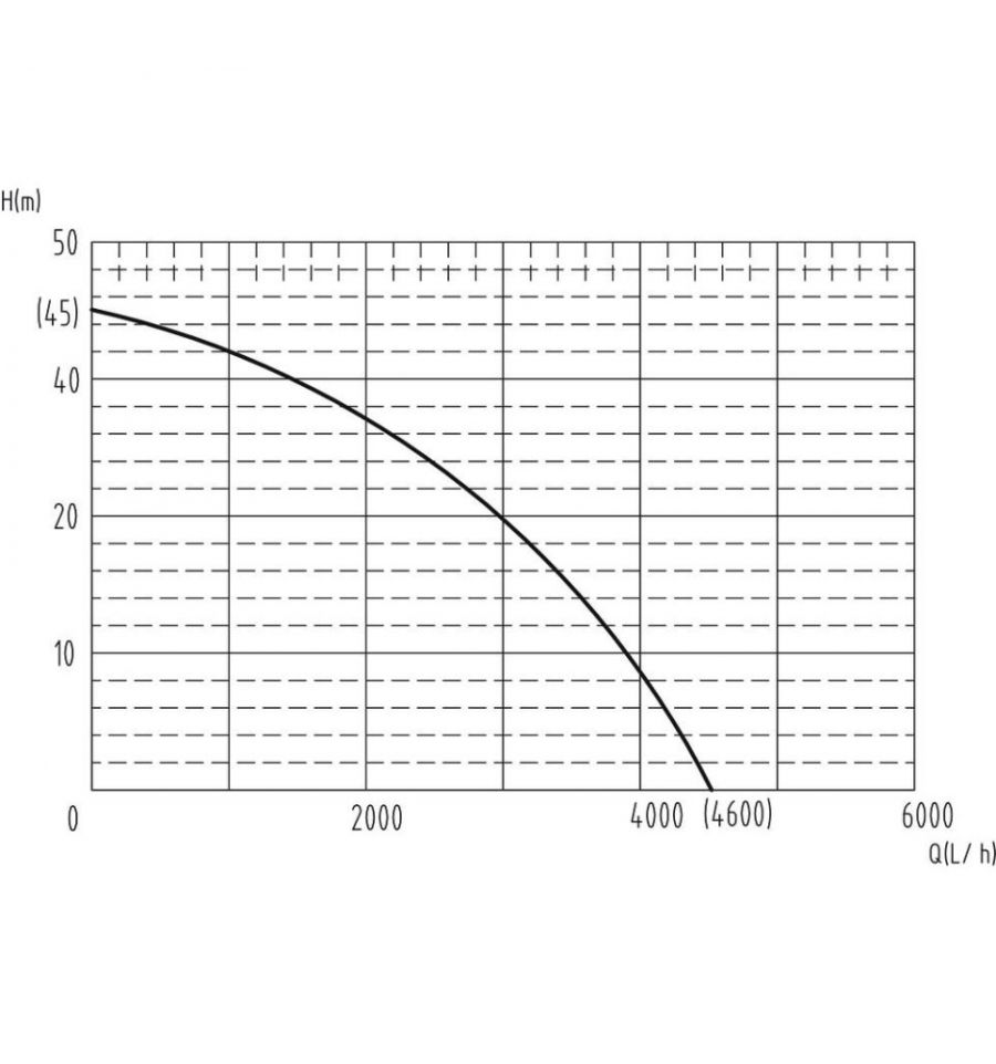 En fonctionnement, la pompe développe une puissance de 1000 W, offre un débit maximal de 4600 litres par heure et peut refouler l’eau jusqu’à 45 mètres de hauteur avec une pression maximale de 4,5 bars.