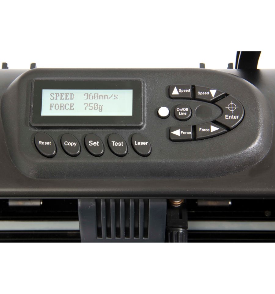 - Allumez le plotter et réglez la pression de la lame (jusqu’à 500 g selon l’épaisseur du matériau).