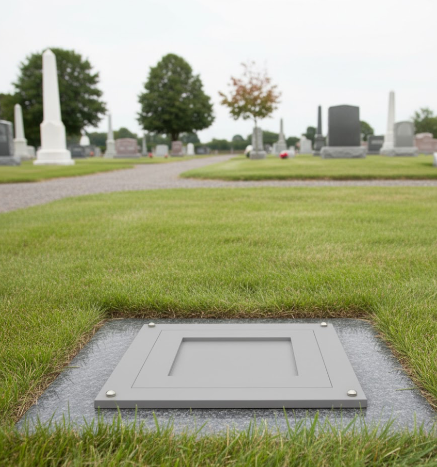 La cavurne béton plate à enterrer est une case en béton brut conçue pour accueillir les urnes cinéraires d'un défunt.