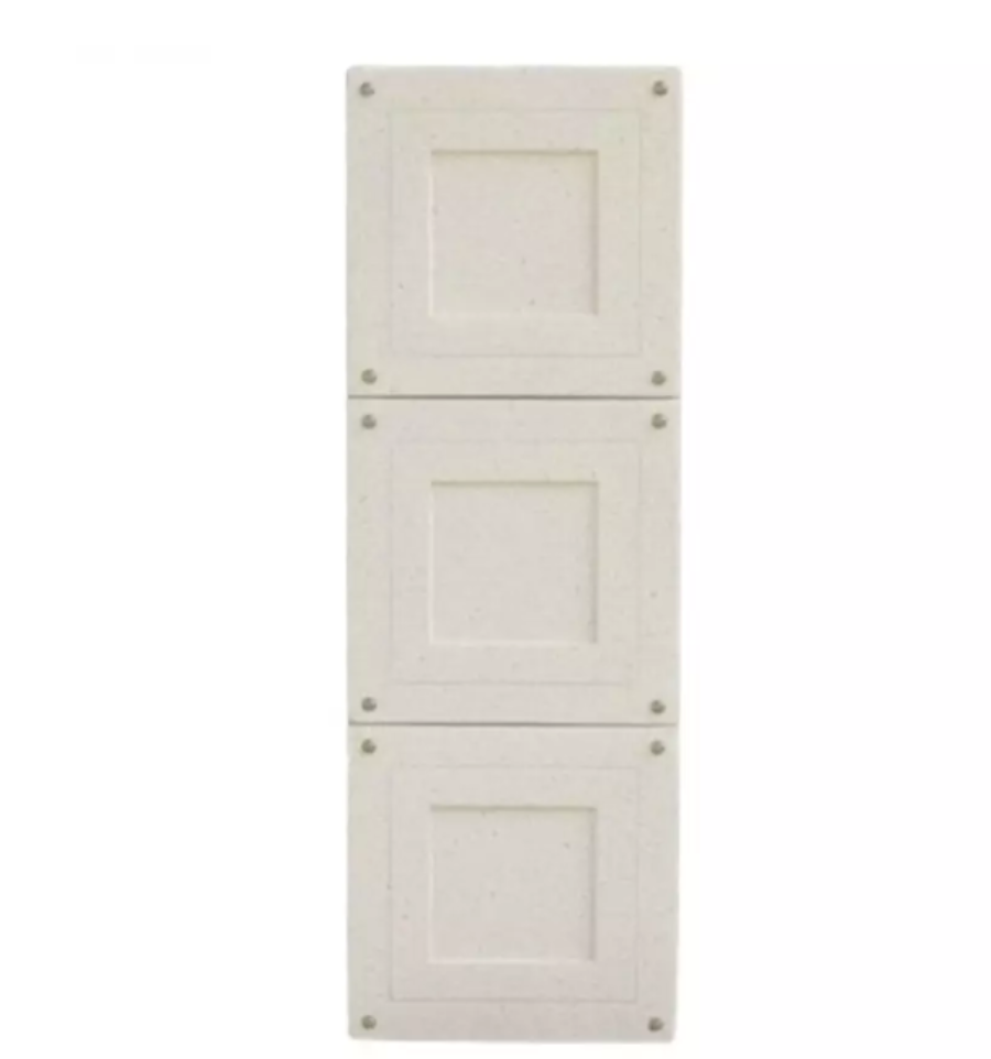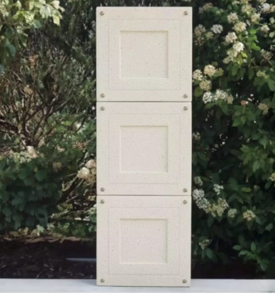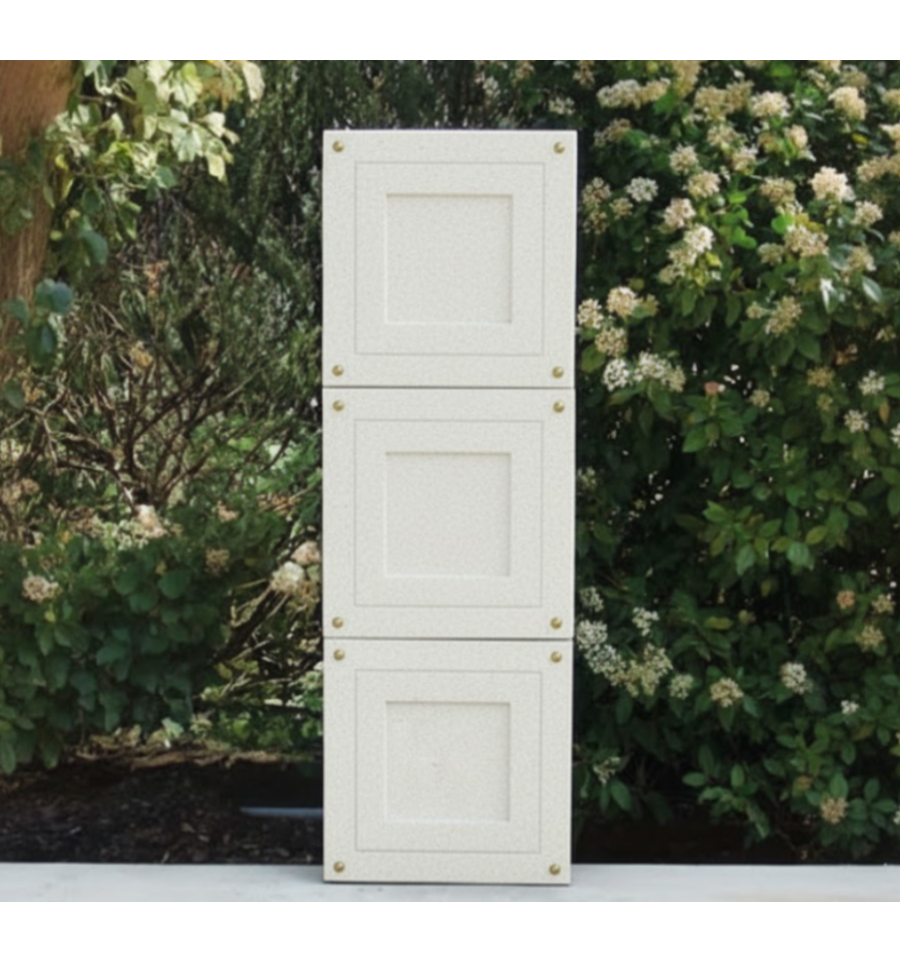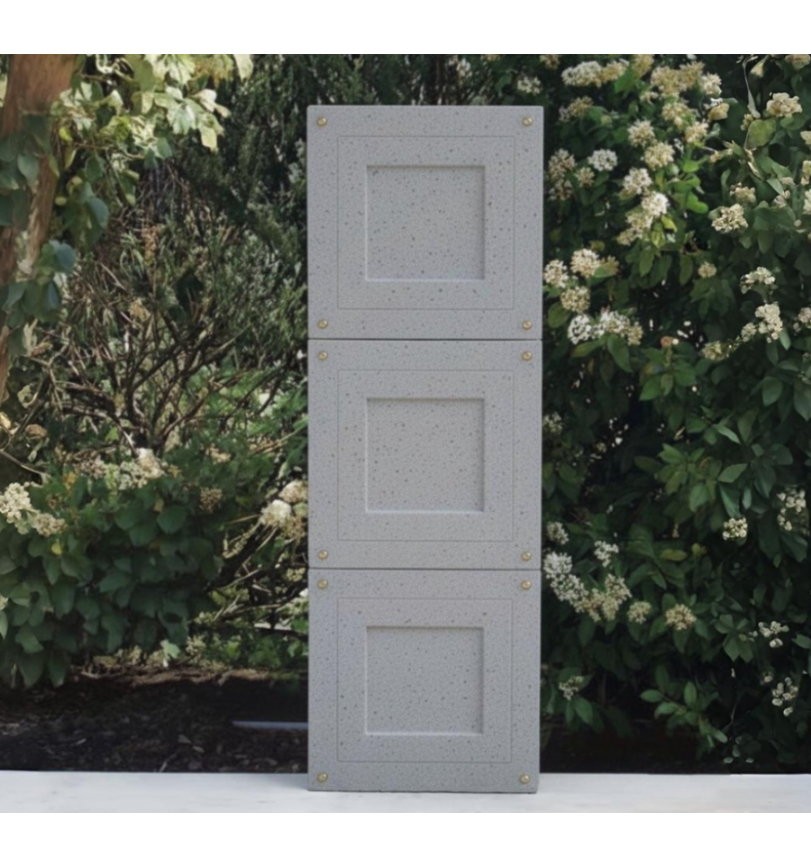 Le monument comprend 3 cases simples en béton désactivé blanc et 3 couvercles en béton sablés vanille, blanc ou gris. La visserie est également incluse.