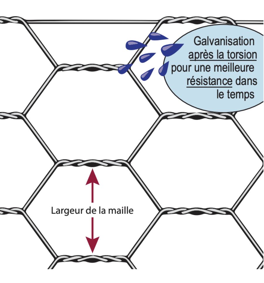 En effet, il est beaucoup plus résistant que le grillage galvanisé simple torsion grâce à sa confection en mailles hexagonales de 25 mm de largeur.